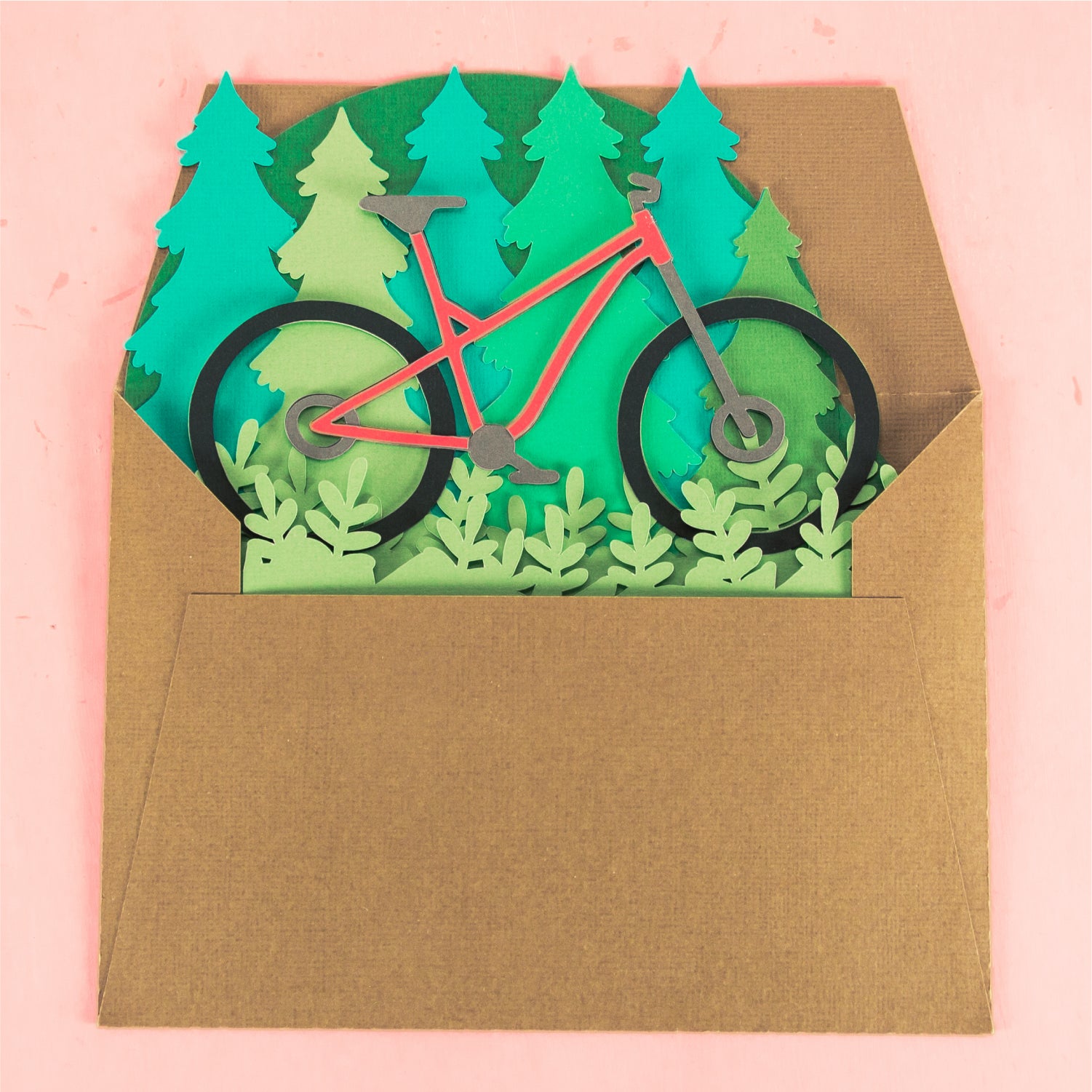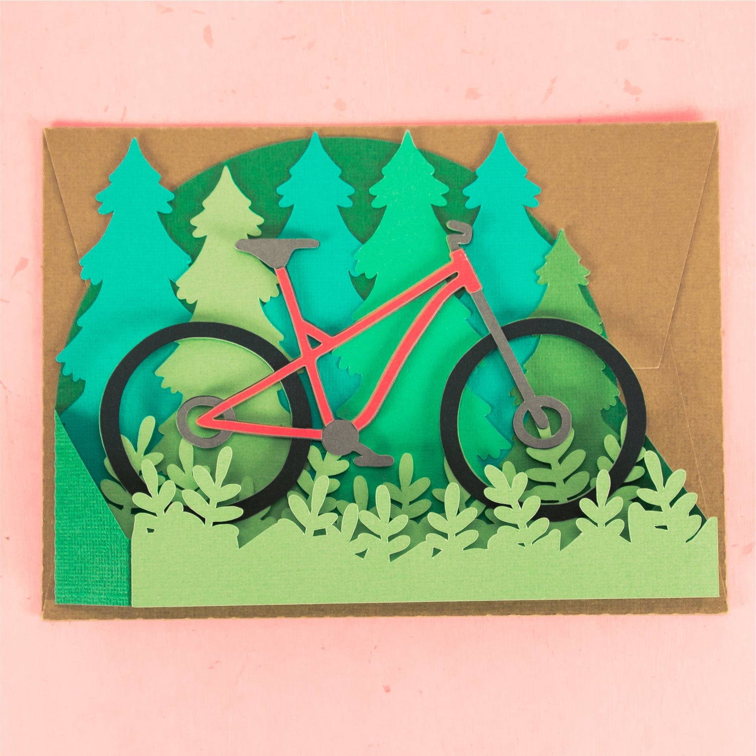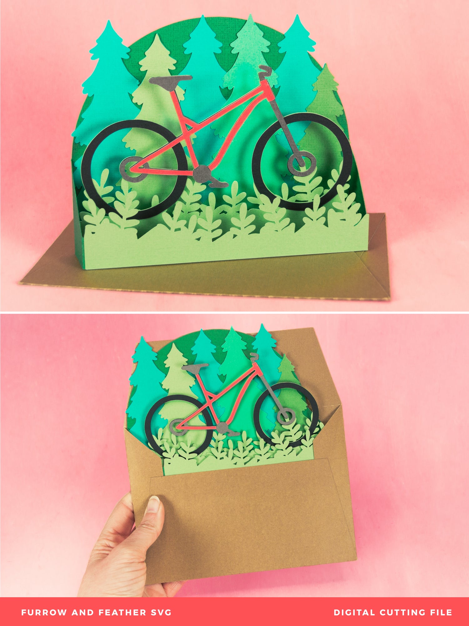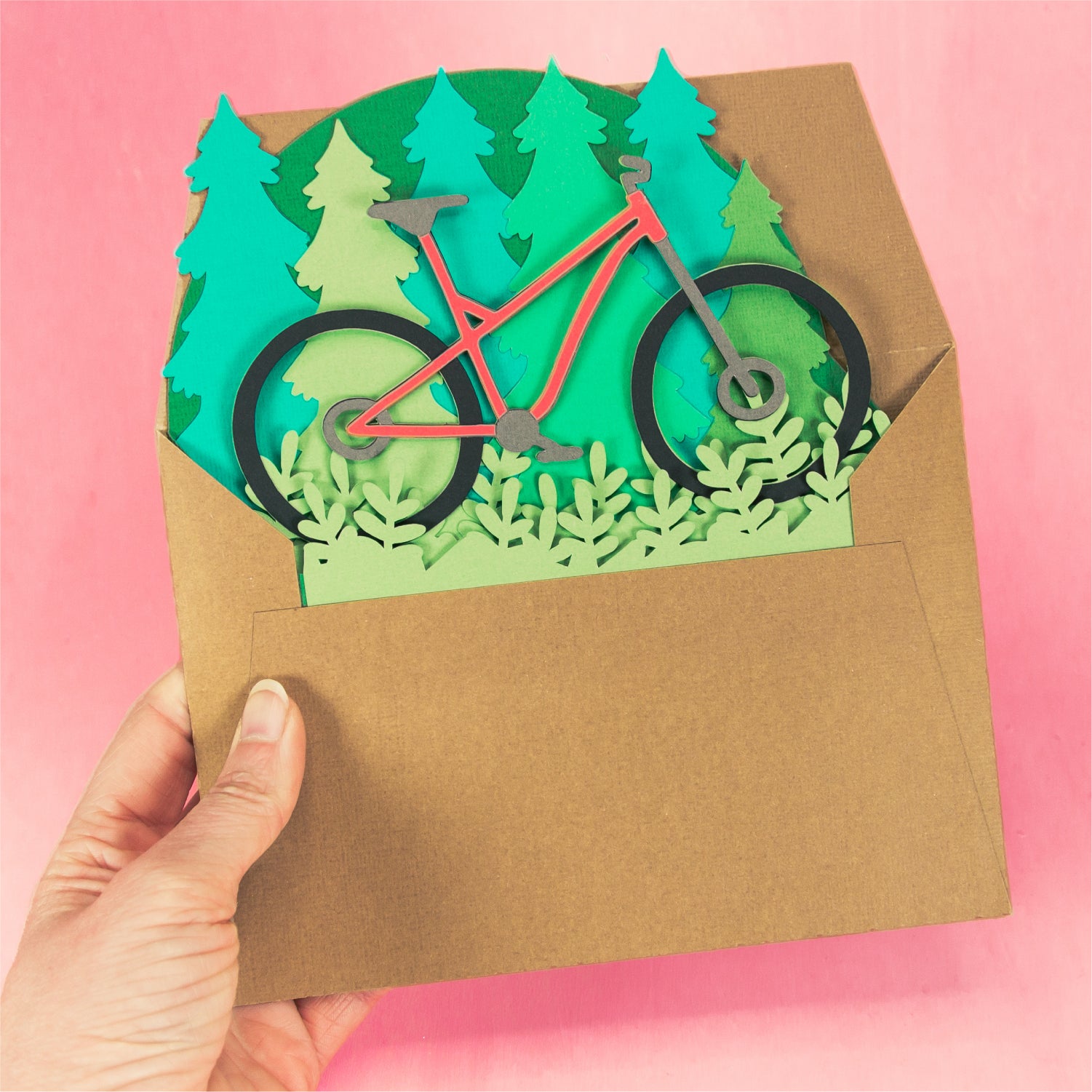 Create a fun card for your favorite mountain biker with this Mountain Bike Card - a 3D biking card SVG! This is such a fun card for Father's Day or a birthday card. This design features a mountain bike in a forest. Change the color of the bike frame to match the recipients bike! This cutting file is perfect for Cricut and Silhouette cutting machines. The card folds flat for easy mailing and fits perfectly in the included 5x7” envelope cut file. Explore more of my card designs for even more cute and creative ideas!