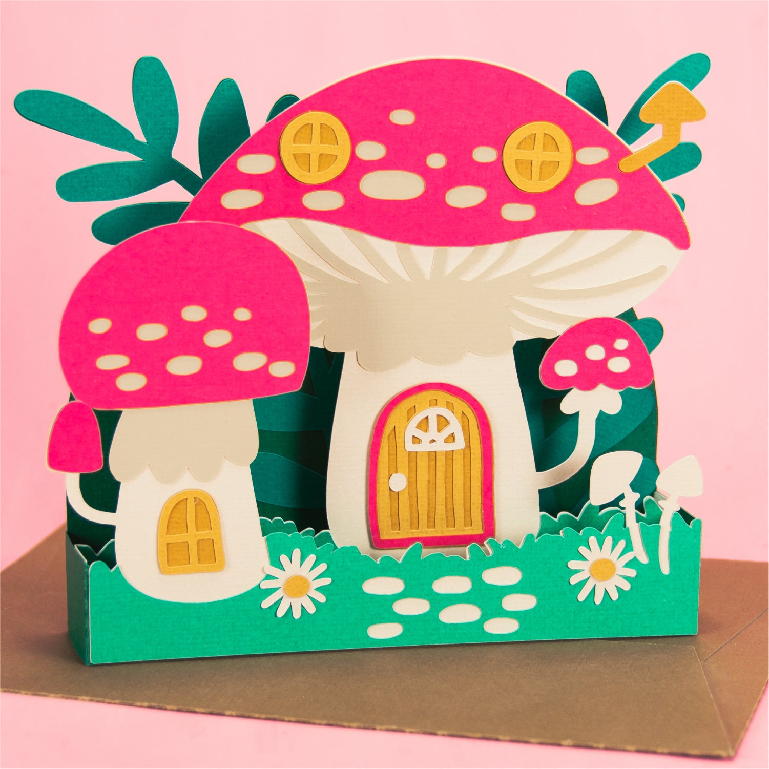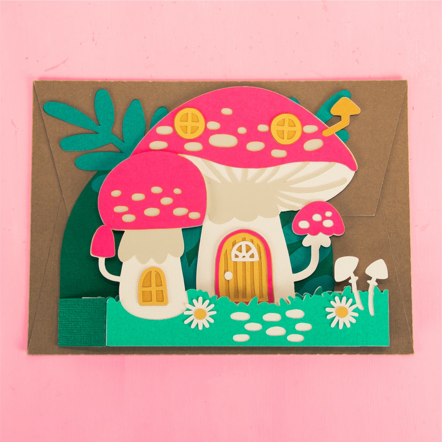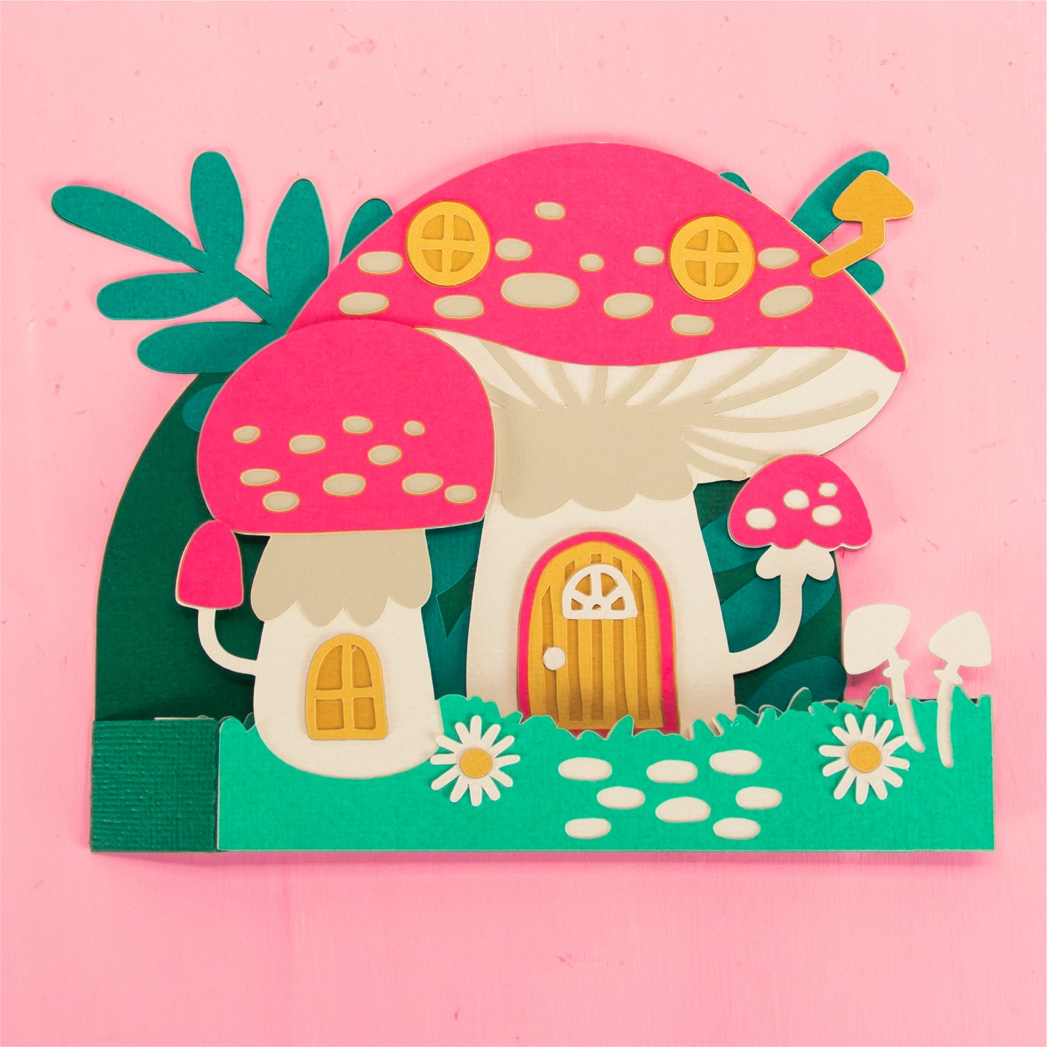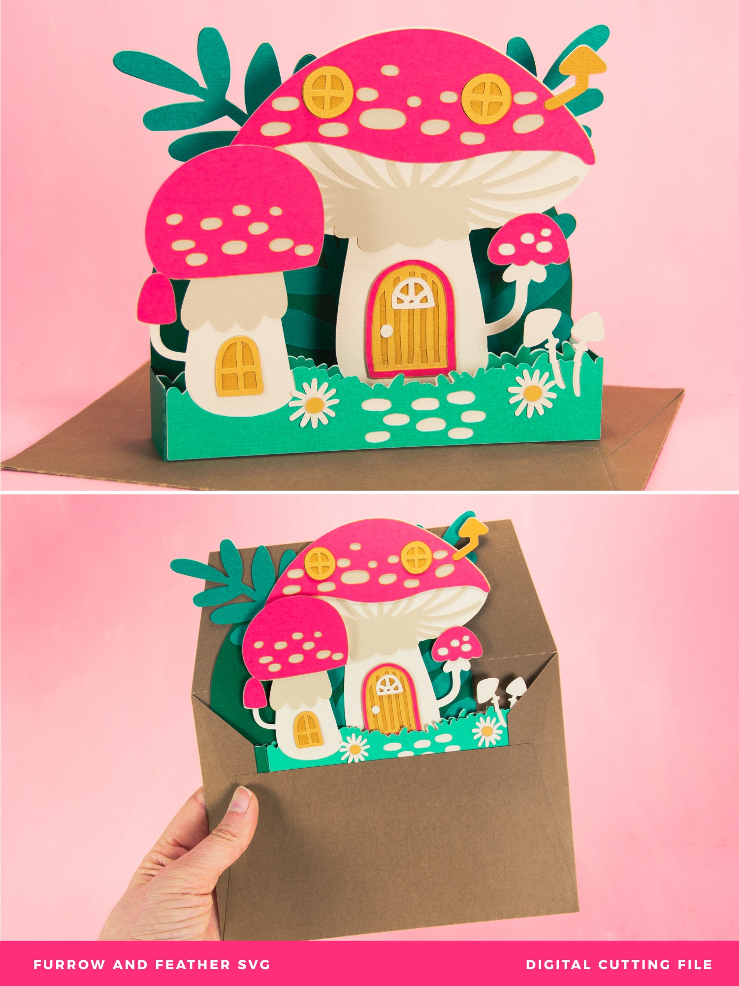 Create the cutest fall card with this Mushroom House Card - a 3D Autumn Card SVG! Featuring a home made out of mushrooms, this cutting file is perfect for Cricut and Silhouette cutting machines. The card folds flat for easy mailing and fits perfectly in the included 5x7” envelope cut file. This design would work great for a birthday, a thank you card, or just because! Change the color of the windows and doors for a more customized look (I think purple would look great), and add your own words to the front! Explore more of my designs for even more cute and creative papercraft ideas!