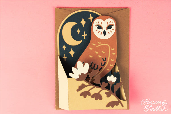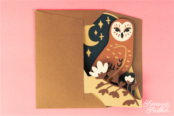 A beautiful card for Halloween, or for your favorite witchy friend! Add you own sentiment, and write a note on the back. Folds flat to fit in the included 5x7” envelope cut file.
