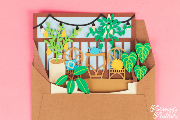 - 1 SVG, 1 DXF and 1 EPS cutting file of the 5x7” Envelope