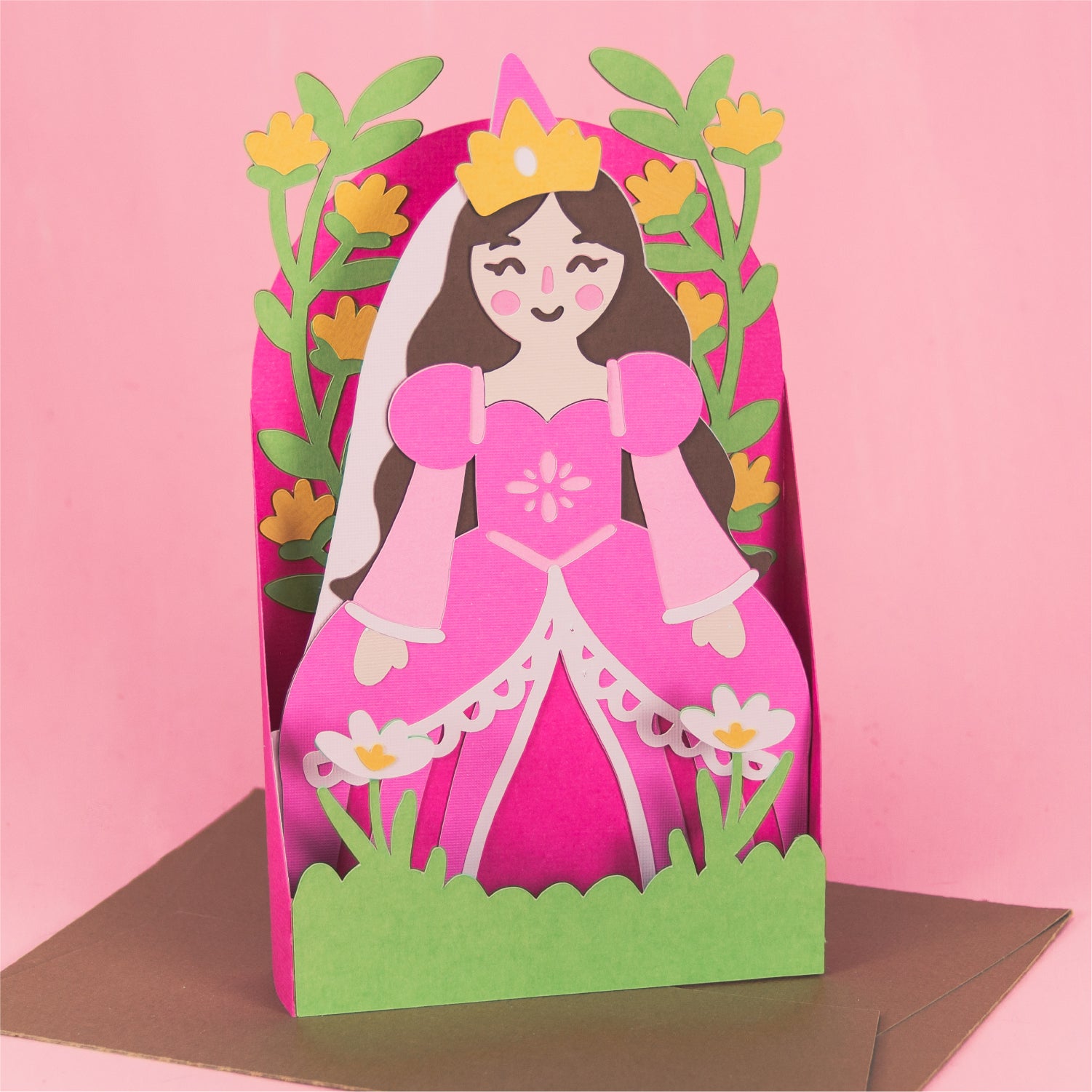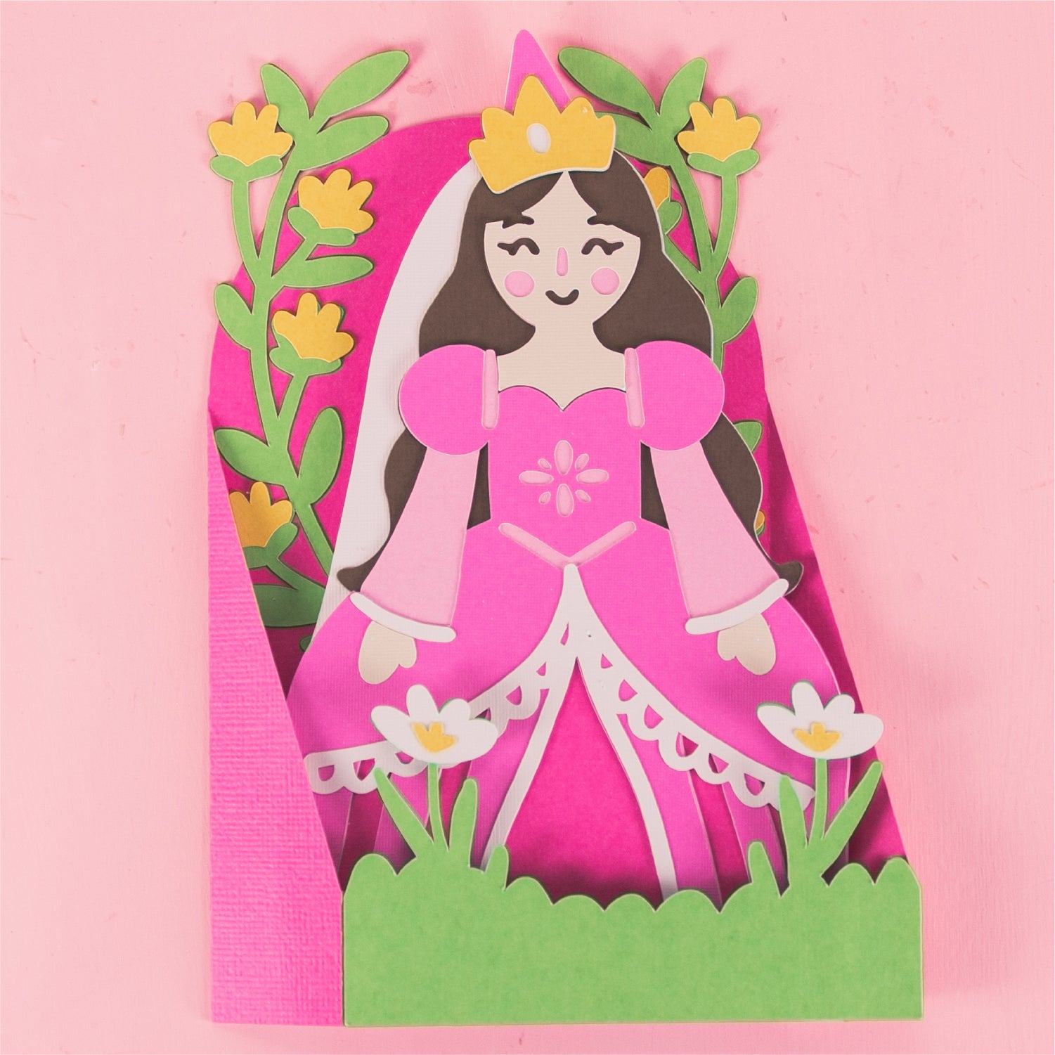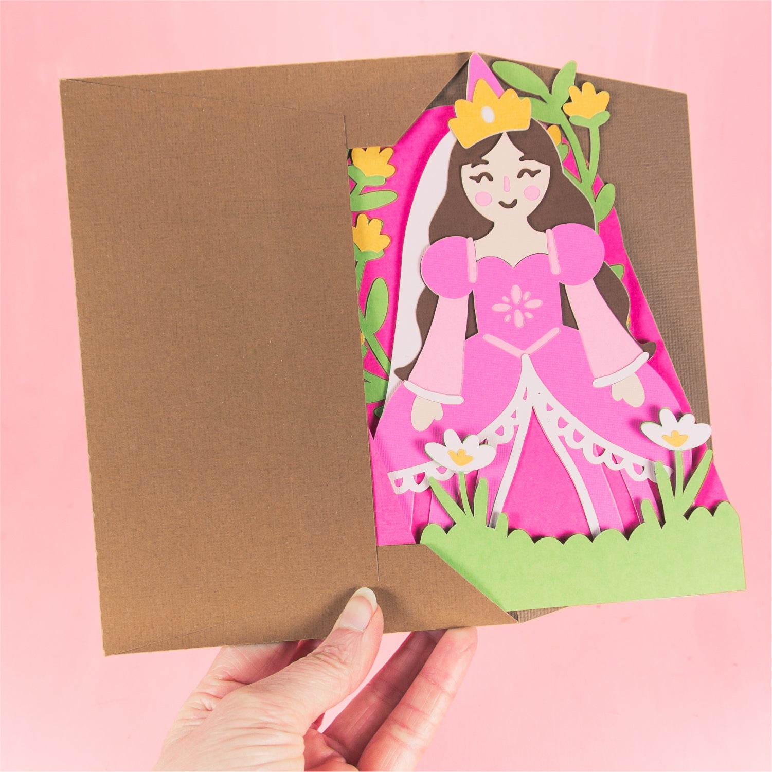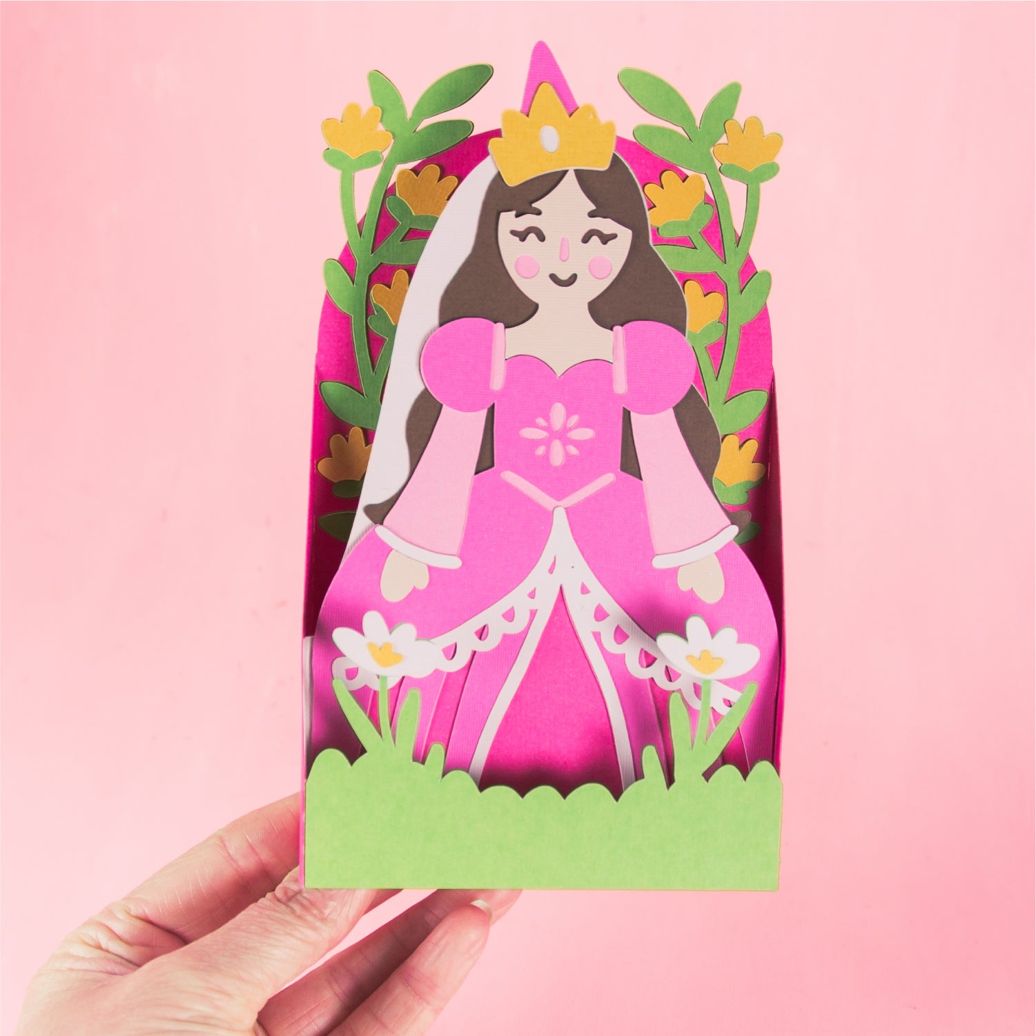 Create the cutest birthday card with this Princess with Flowers Card - a 3D any occasion card SVG! This such a sweet card for your favorite princess - your daughter, granddaughter, niece, sister, or friend! I love this one for a birthday, as a congratulations card, or for any occasion. This design features a princess in a dress, with a princess hat & crown surrounded by flowers. I love updating the hair color and skin tone to match the recipient. I also like to match the dress color to their favorite color! This cutting file is perfect for Cricut and Silhouette cutting machines. The card folds flat for easy mailing and fits perfectly in the included 5x7” envelope cut file. Explore more of my card designs for even more cute and creative ideas!