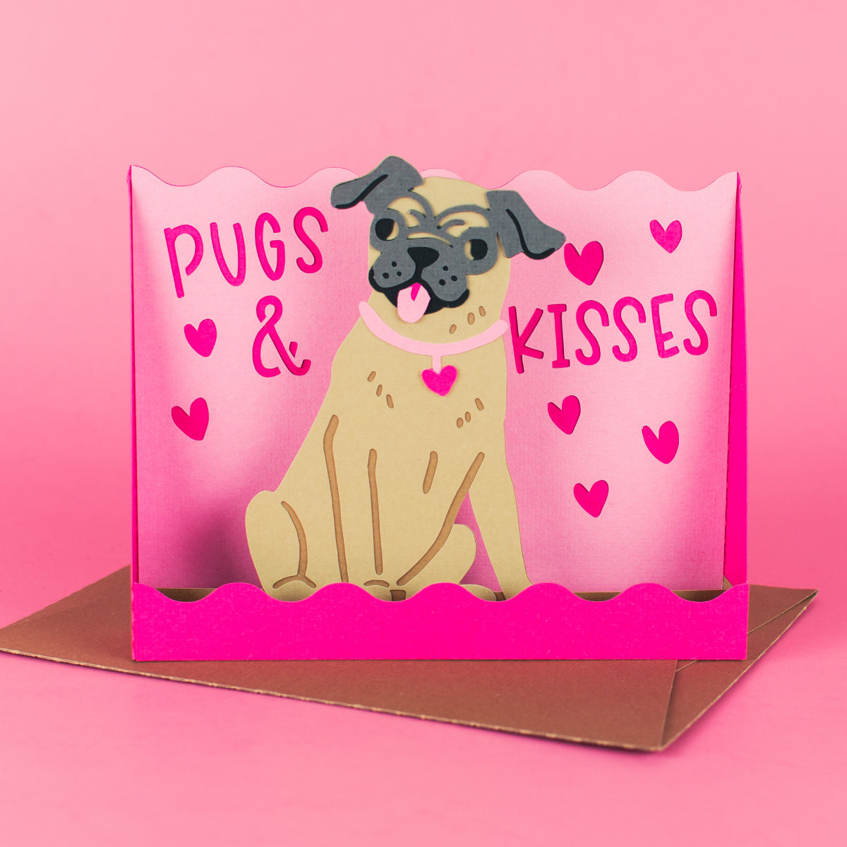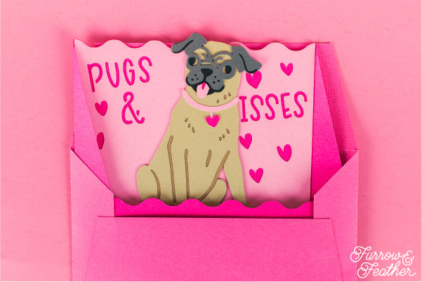 I love this card for Valentines Day or for a dog-loving friend! Folds flat to fit in the included 5x7” envelope cut file.