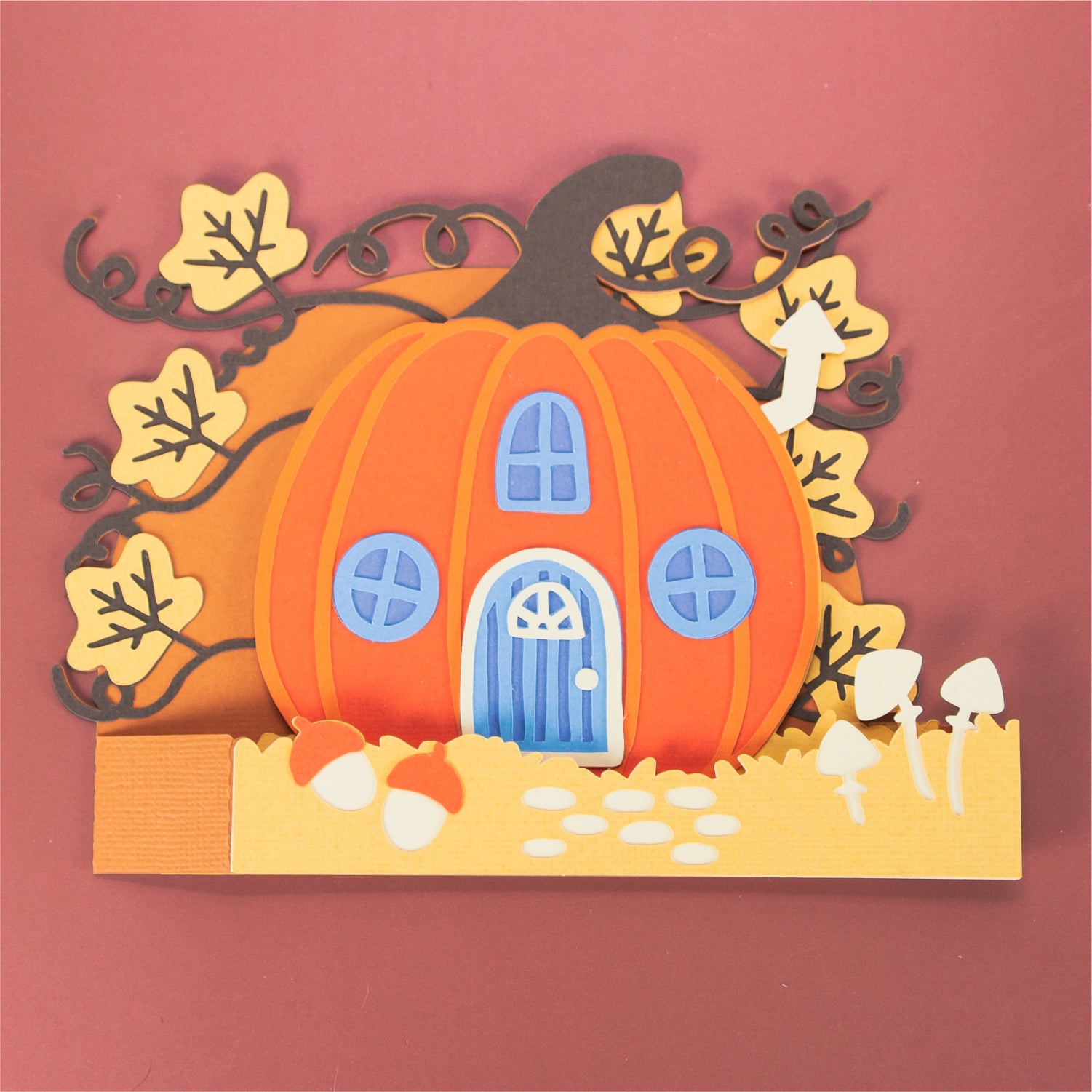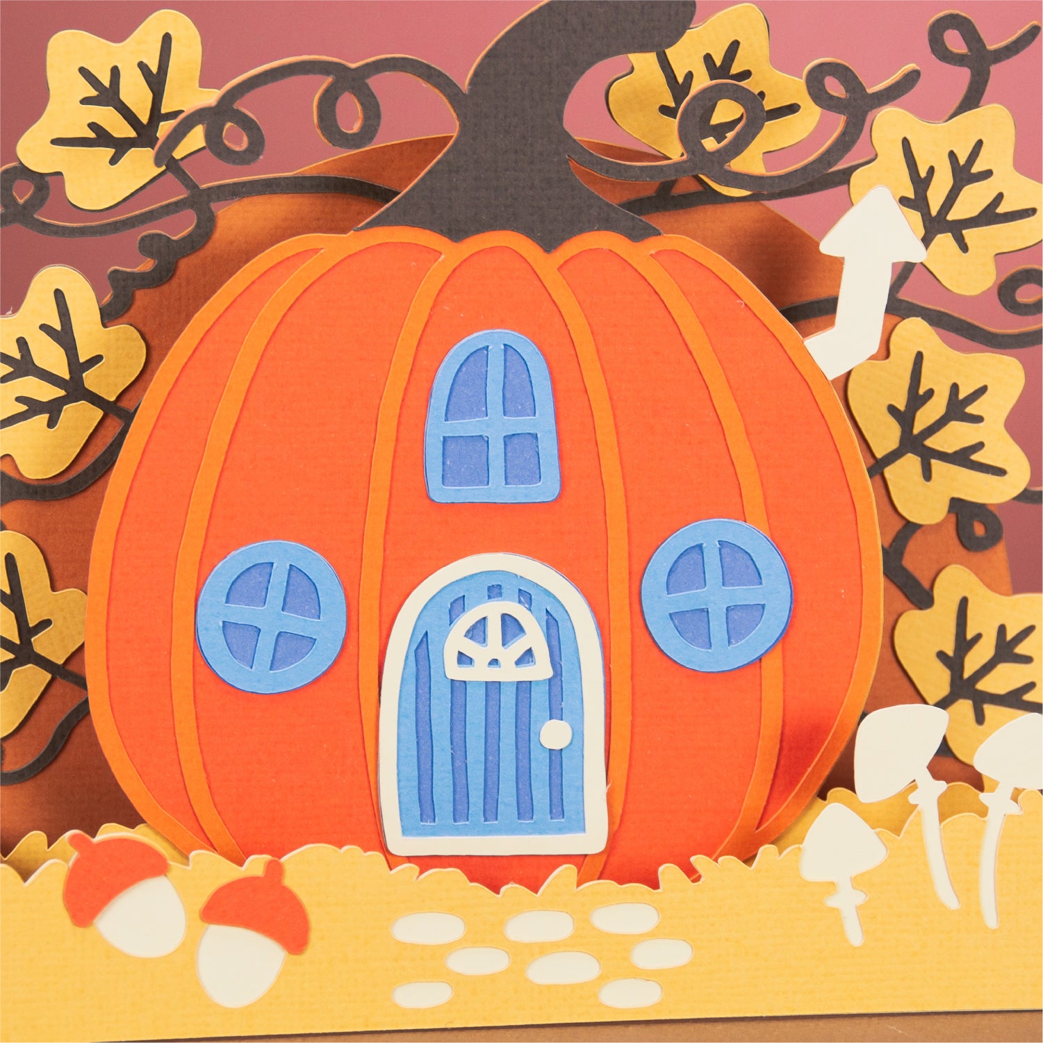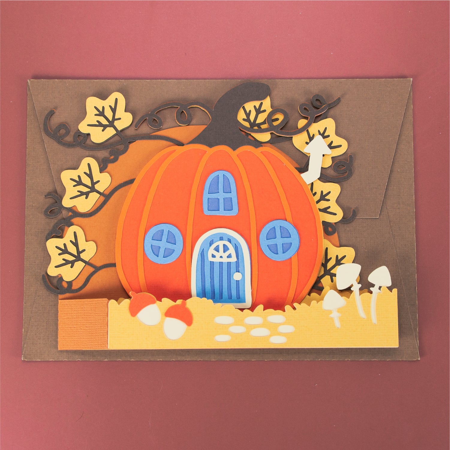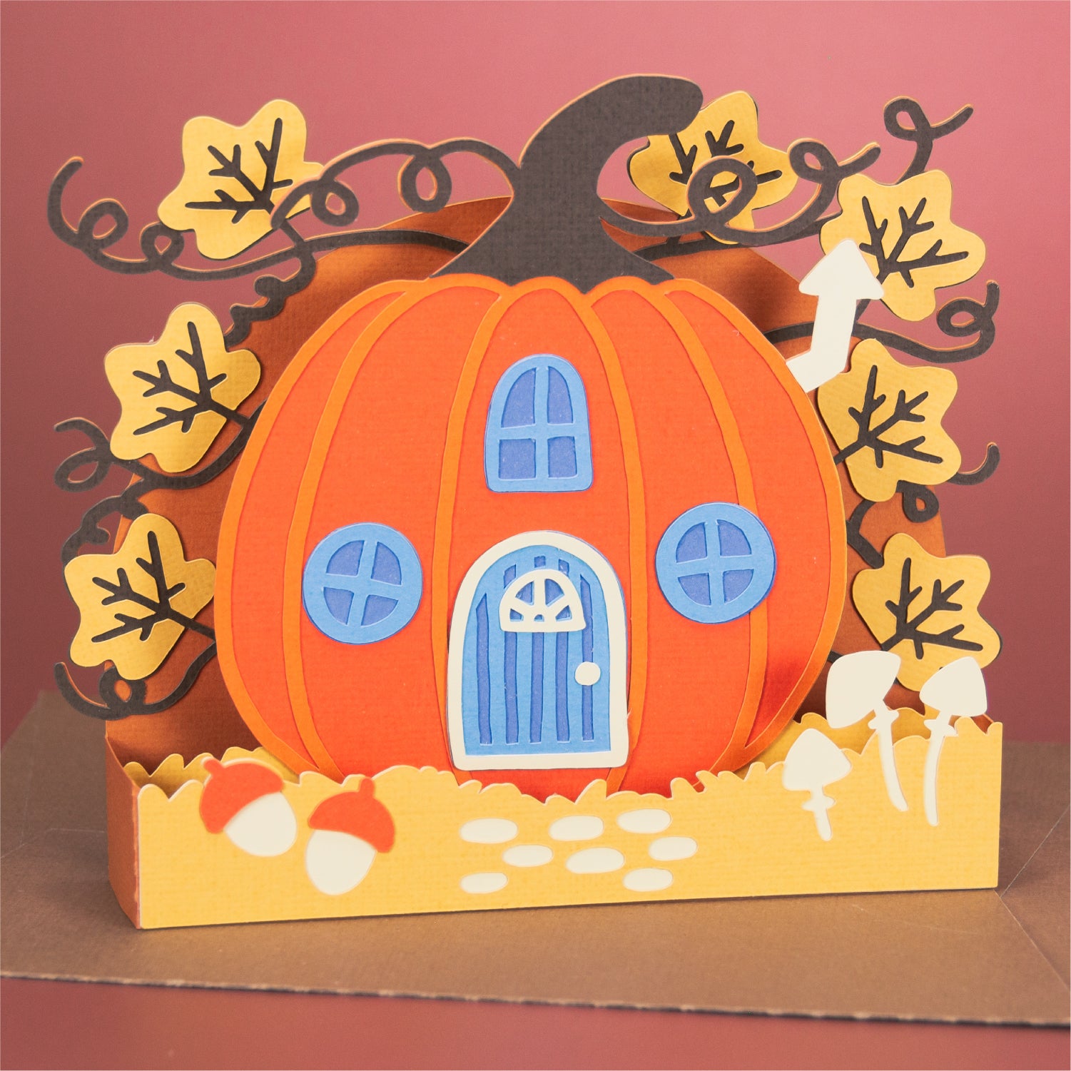 Create the cutest fall card with this Pumpkin House Card - a 3D Autumn Card SVG! Featuring a home made out of a pumpkin, this cutting file is perfect for Cricut and Silhouette cutting machines. The card folds flat for easy mailing and fits perfectly in the included 5x7” envelope cut file. Change the color of the windows and doors for a more customized look (I think purple would look great), and add your own words to the front! Explore more of my designs for even more cute and creative papercraft ideas!