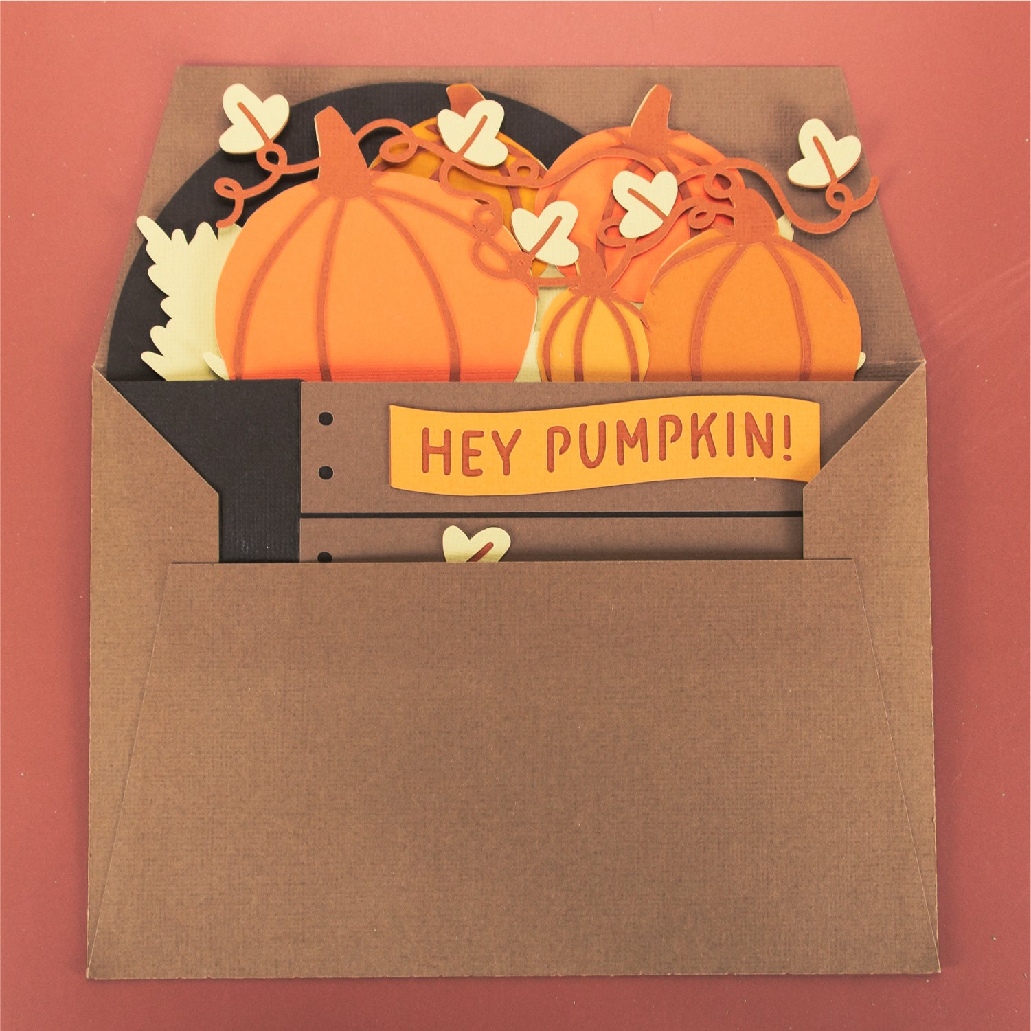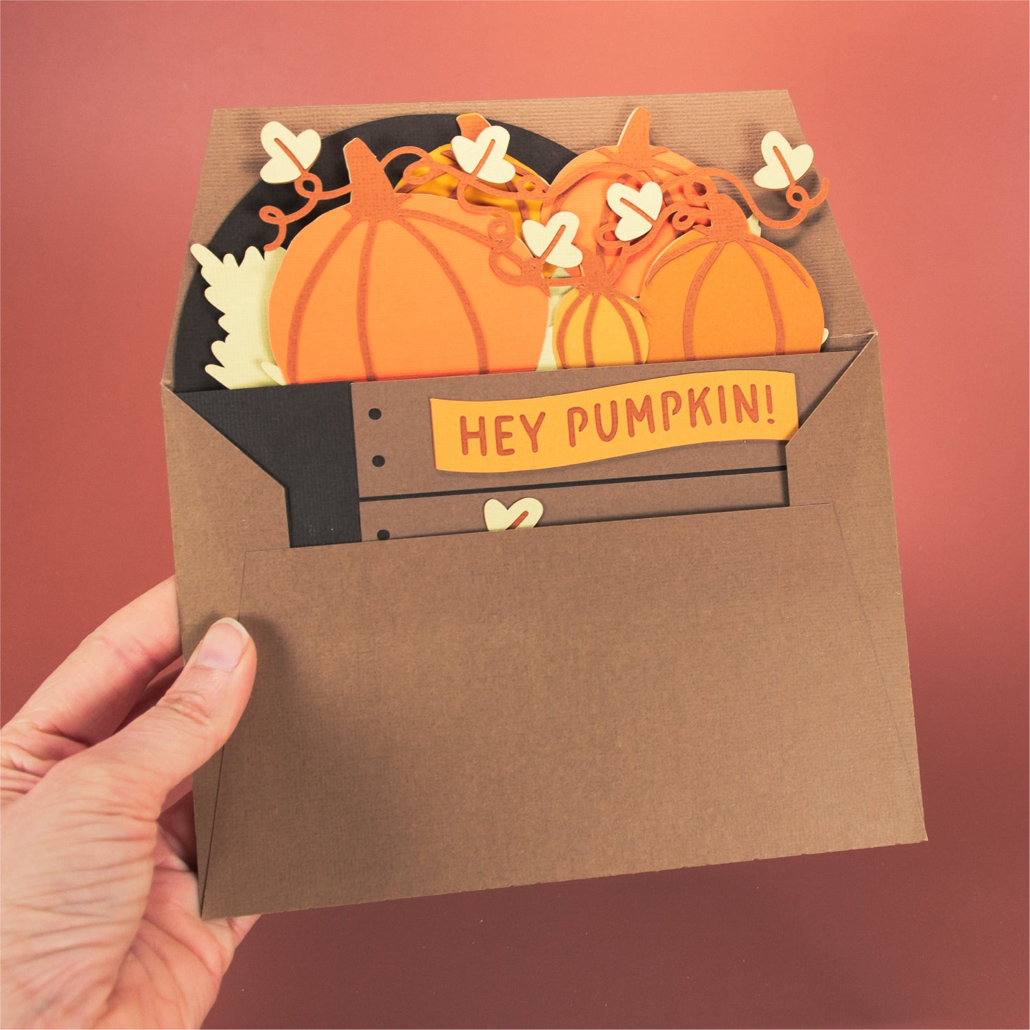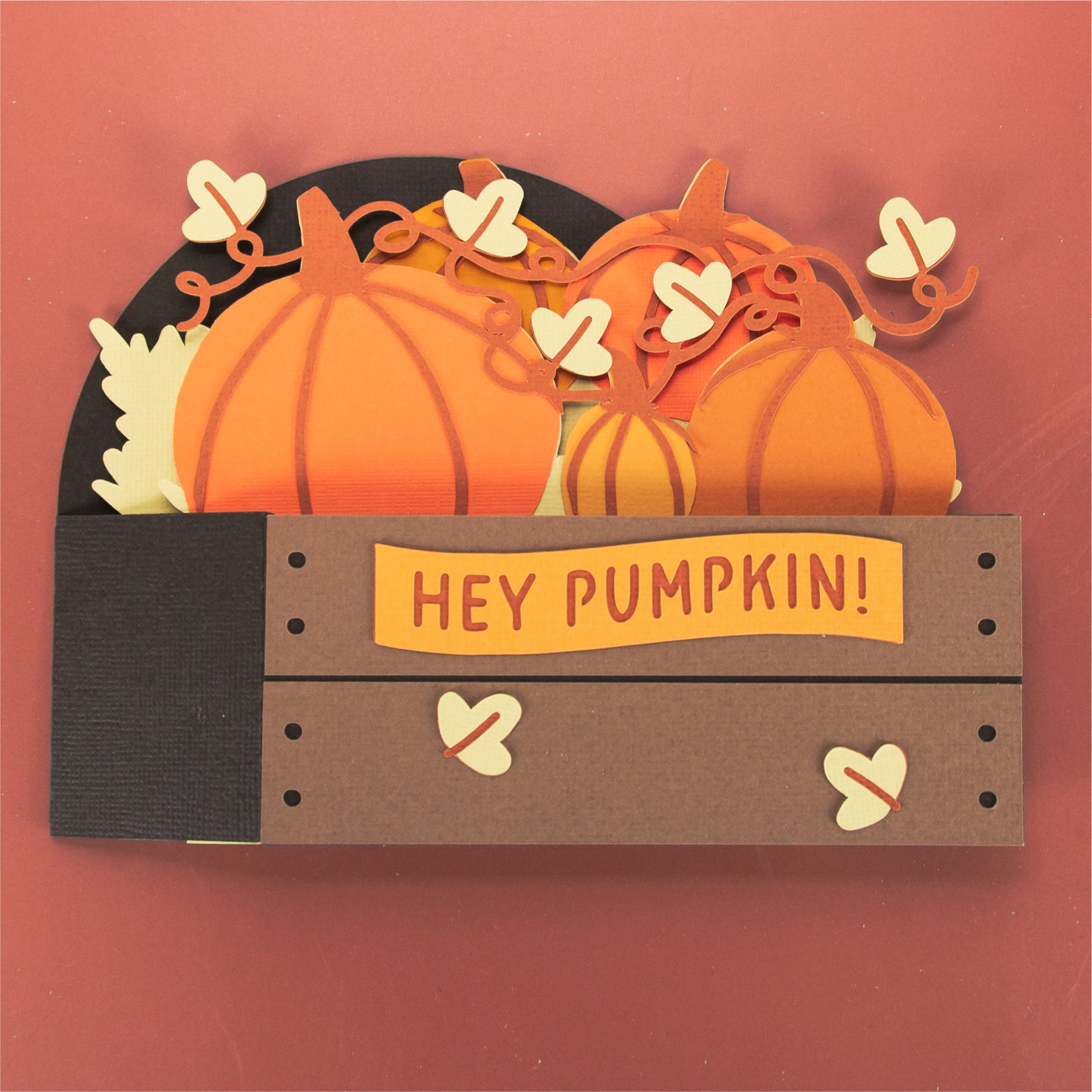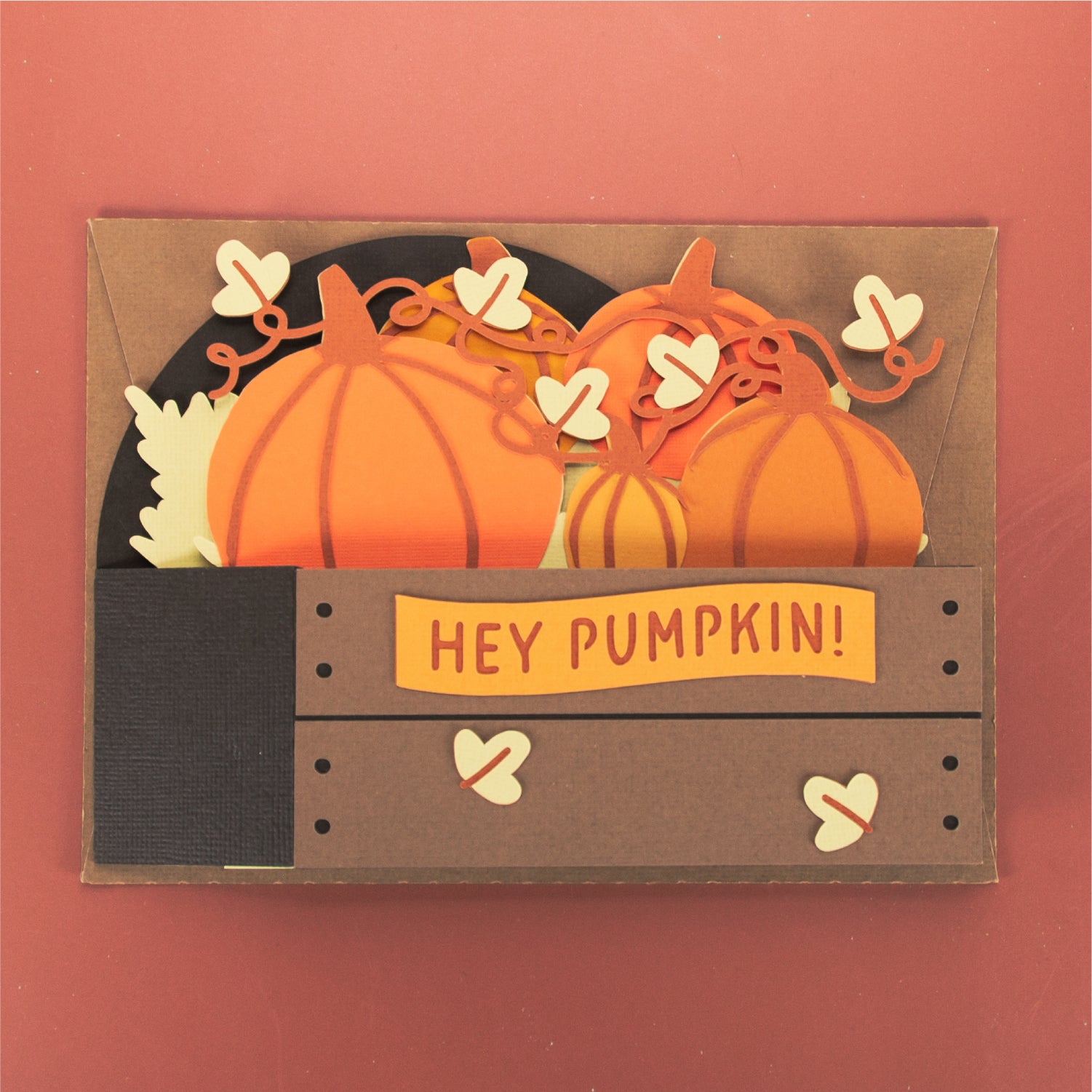 Create a super cute autumn card with this Pumpkins in a Crate card design - a 3D card SVG! It works well for any occasion. This design features a crate full of pumpkins. I love this one for Halloween too. Includes the optional phrase ‘Hey Pumpkin!’, but you can always add your own! This cutting file is perfect for Cricut and Silhouette cutting machines. The card folds flat for easy mailing and fits perfectly in the included 5x7” envelope cut file. Explore more of my card designs for even more cute and creative papercraft ideas!