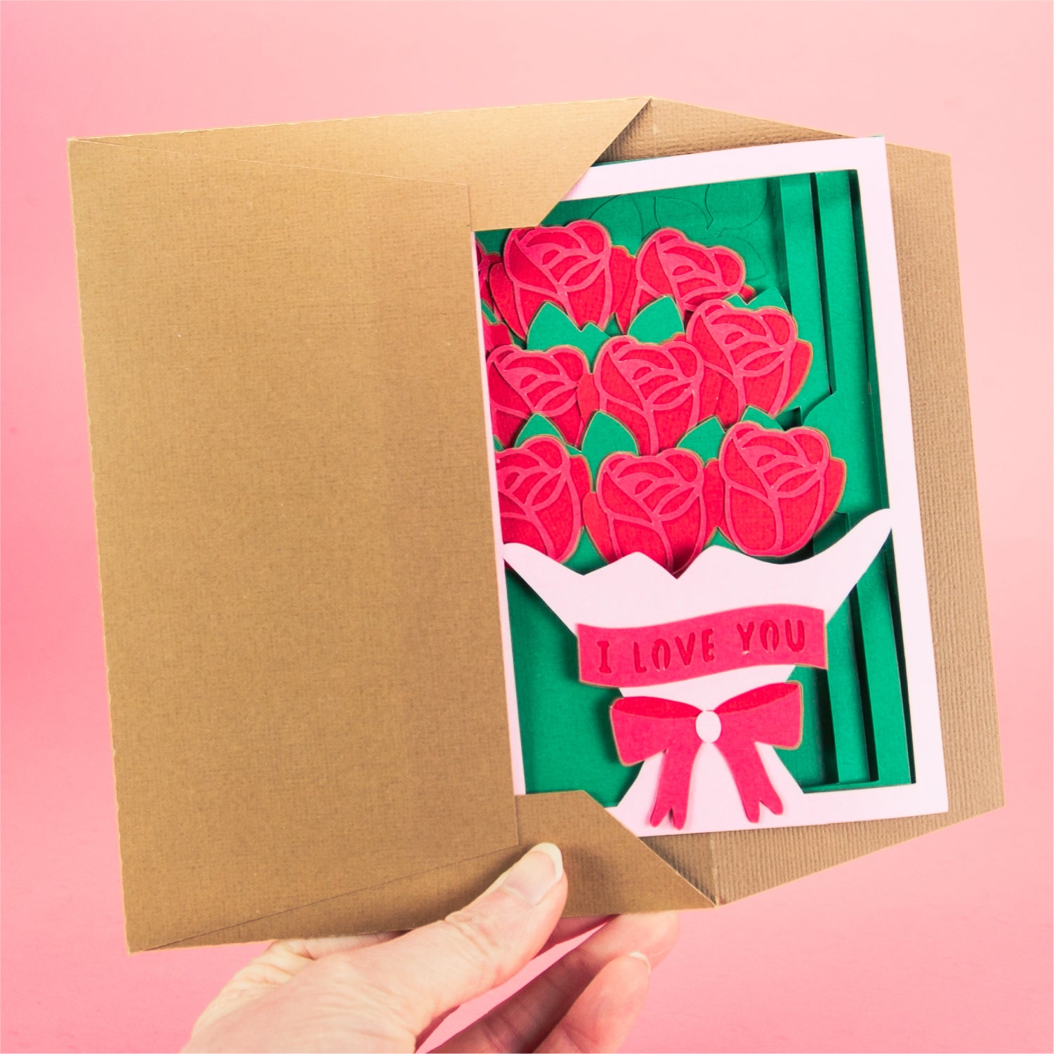 Rose Bouquet Card - 3D Valentine's Day Card SVG