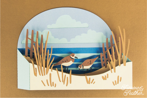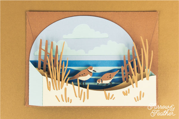 A really beautiful card for any occasion! Featuring a sand dune beach & killdeer birds. Folds flat to fit in the included 5x7” envelope cut file.