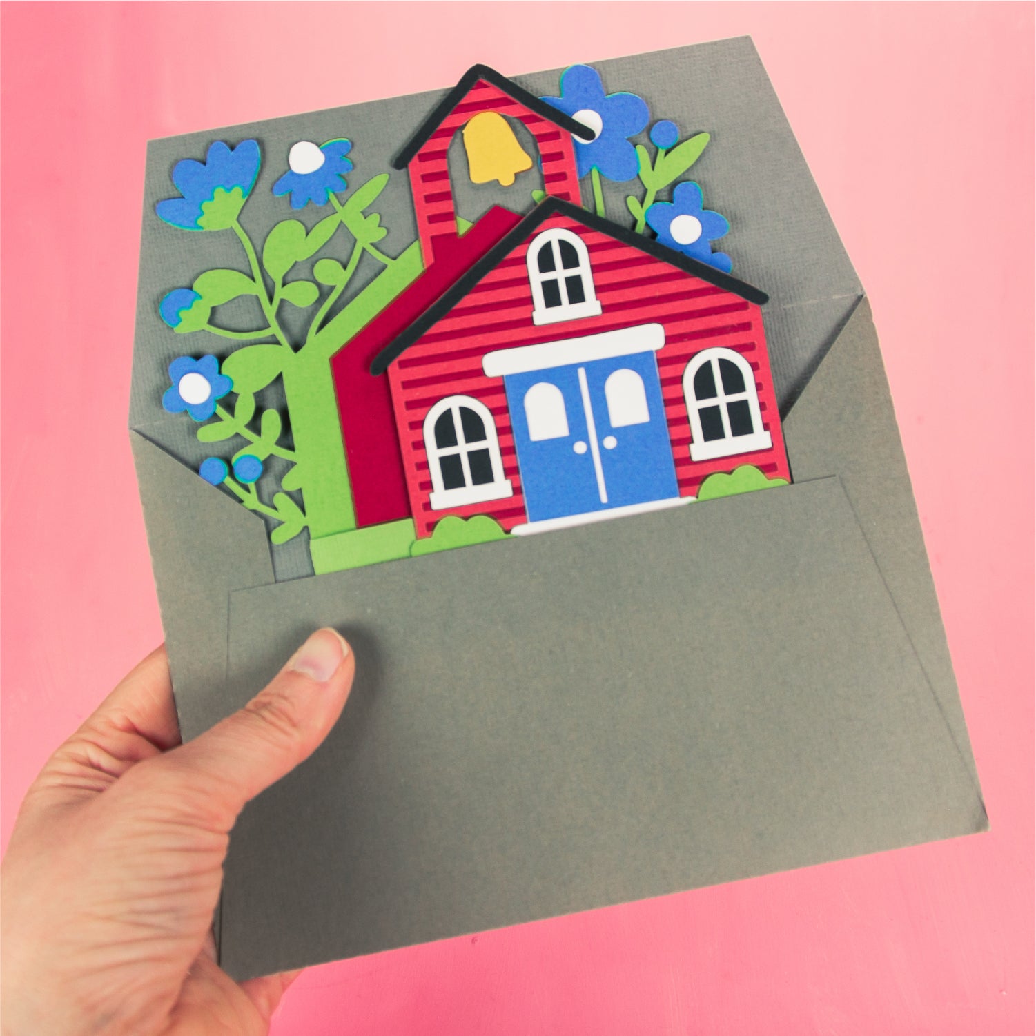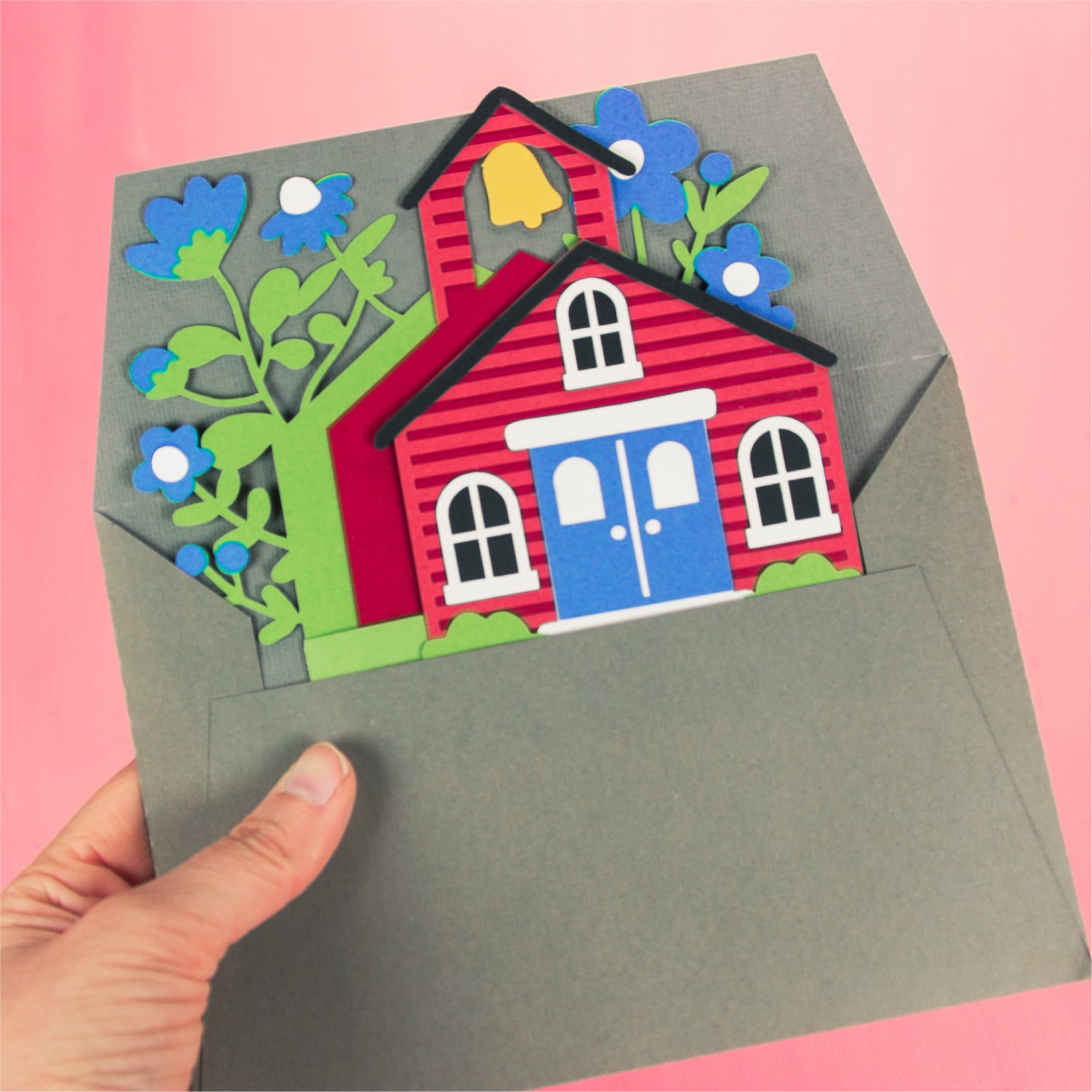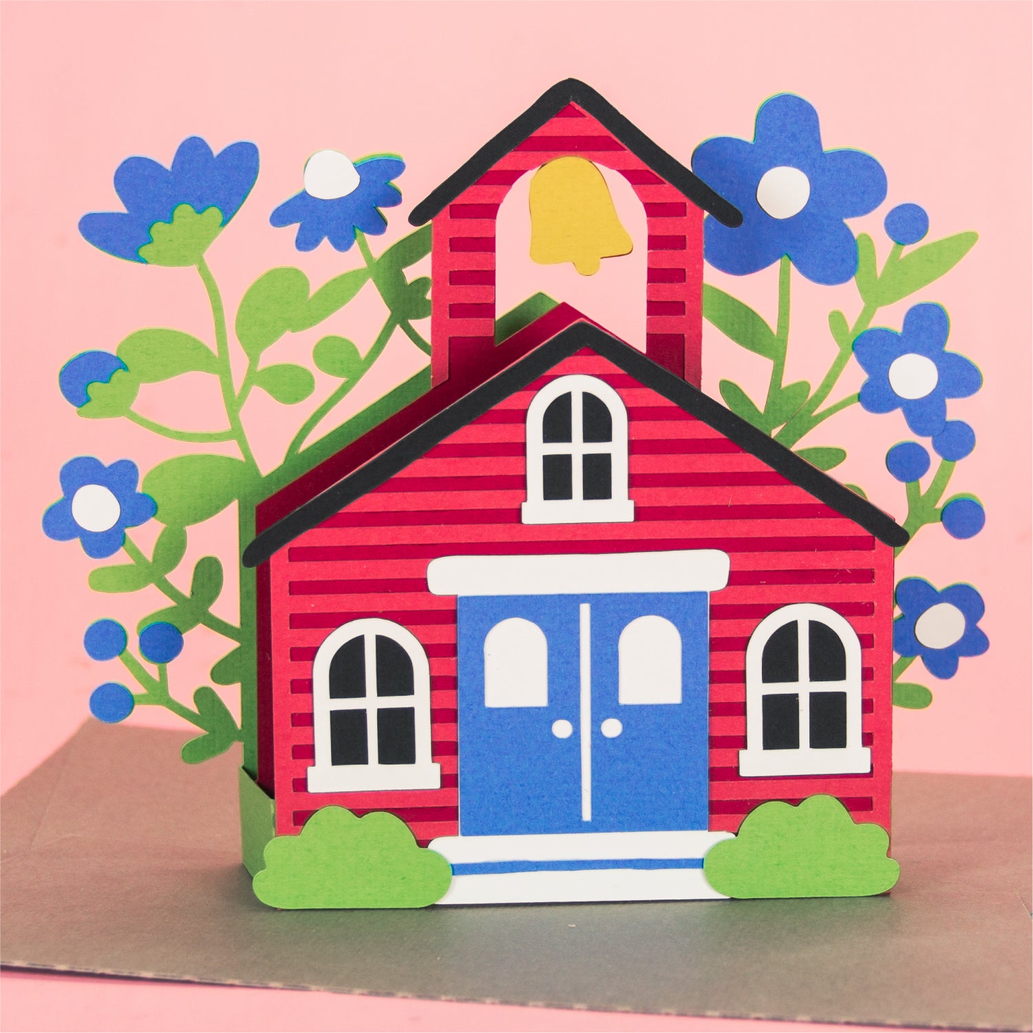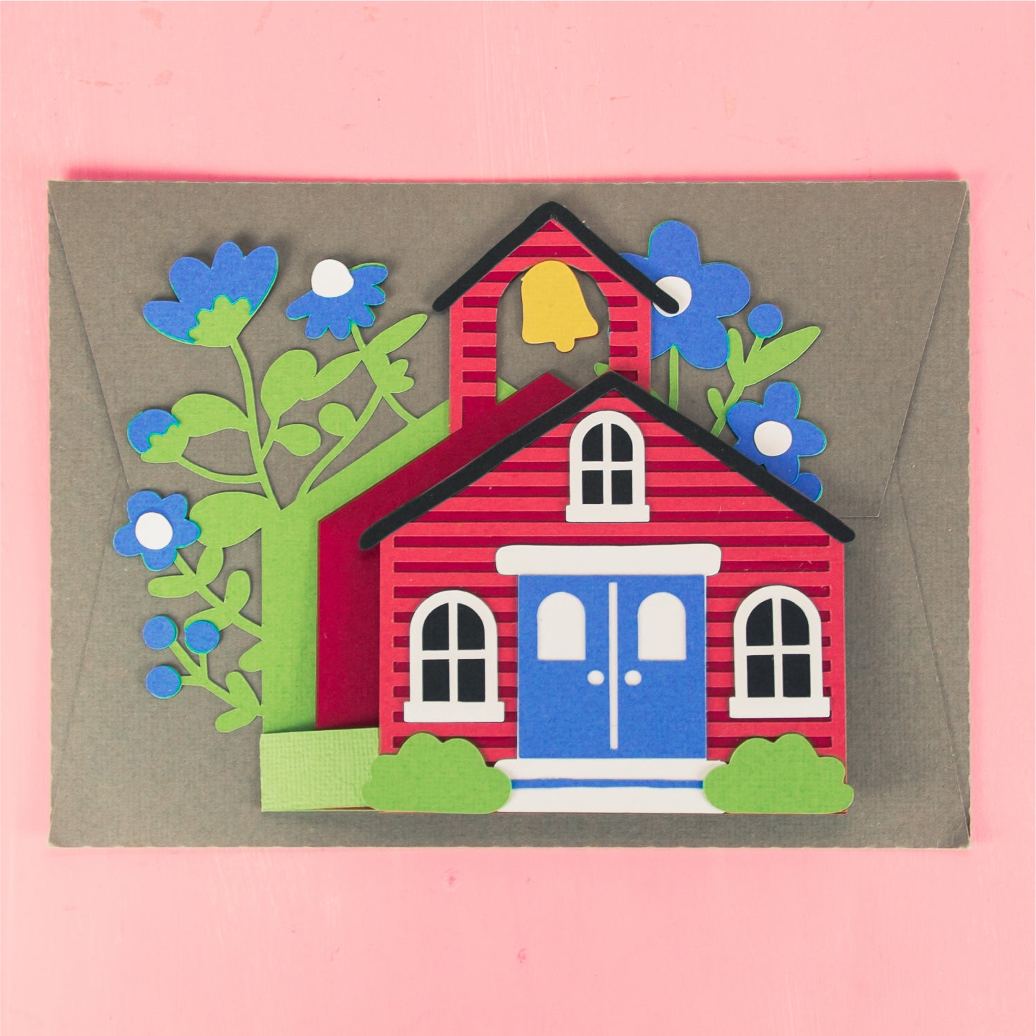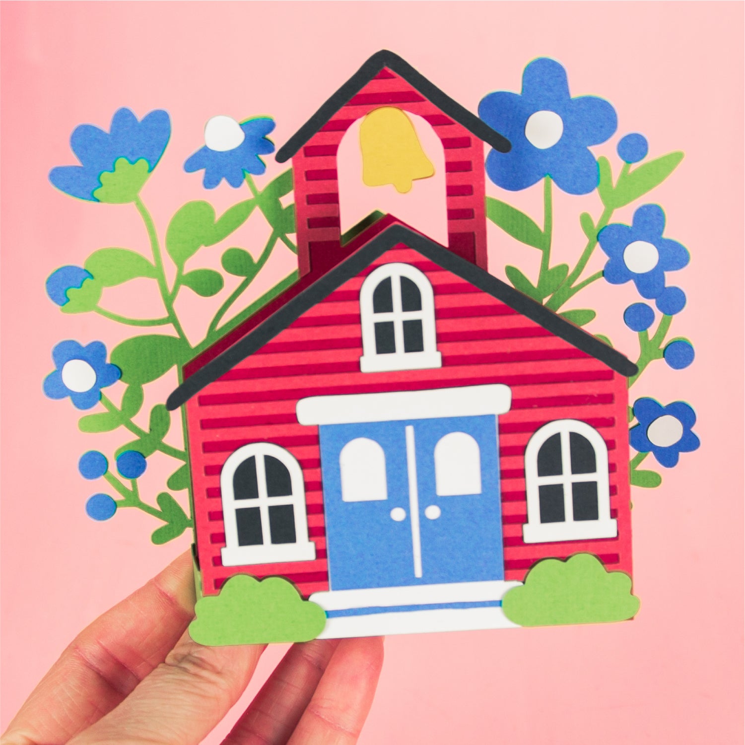 Create a fun Back to School card or Teacher gift with this School House with Wildflowers Card SVG file! You could add your own phrase, or the teacher's name to the front. This cutting file is perfect for Cricut and Silhouette cutting machines. The card folds flat for easy mailing and fits perfectly in the included 5x7” envelope cut file. Explore more of my card designs for even more cute and creative papercraft ideas!