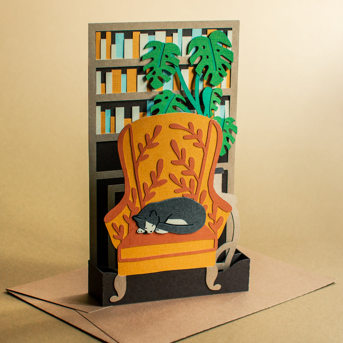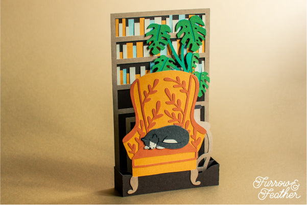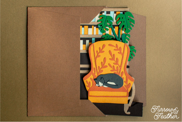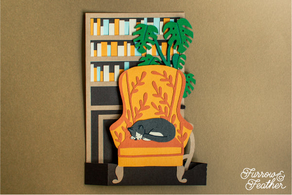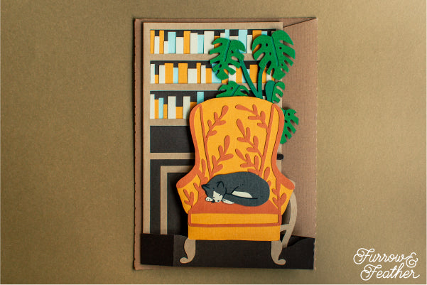 Sleeping Cat Bookshelf Card SVG