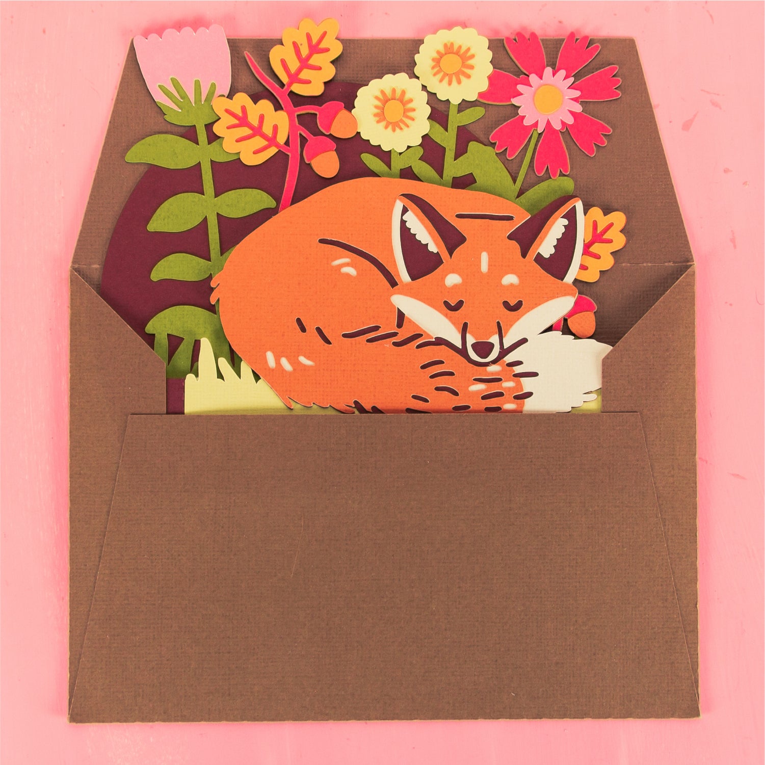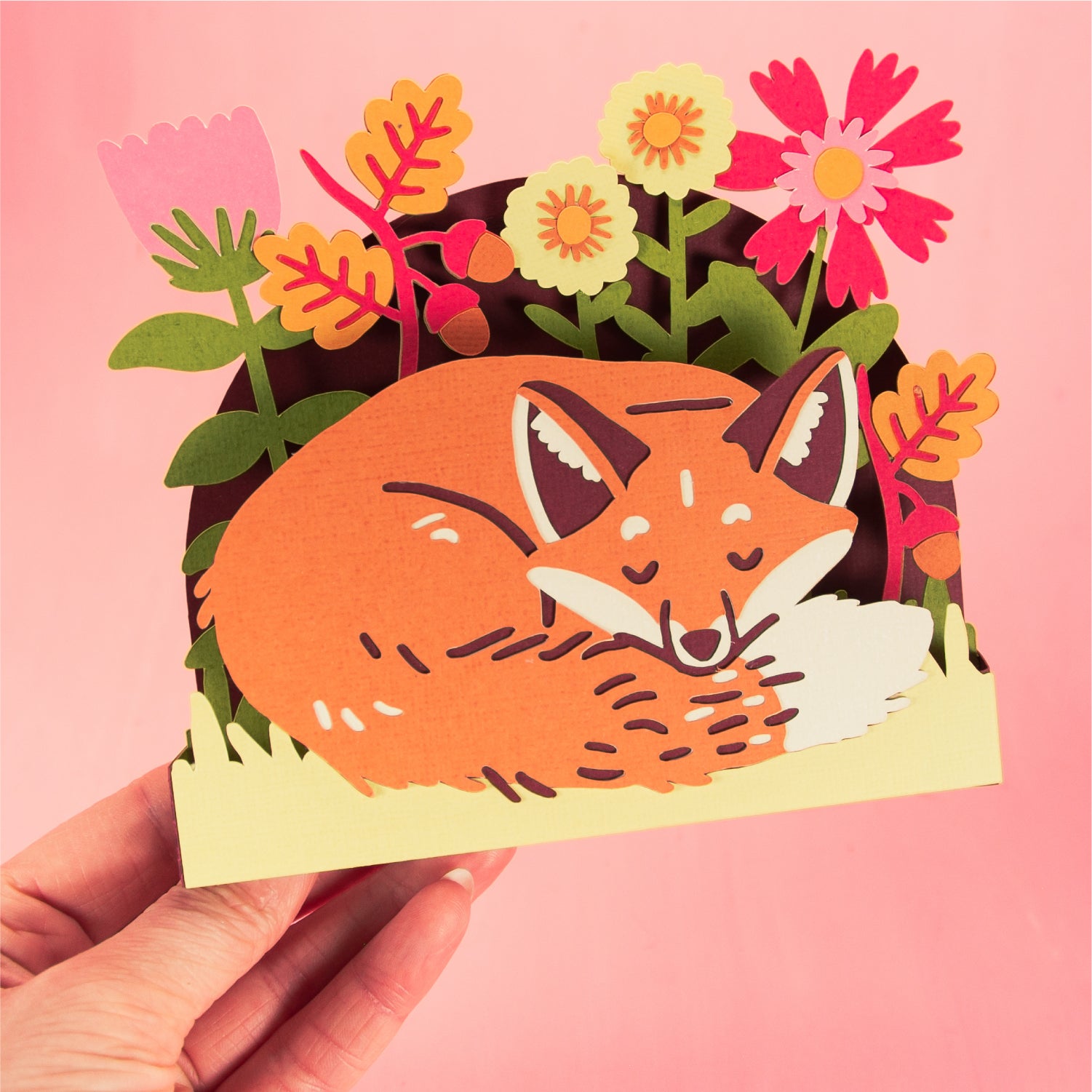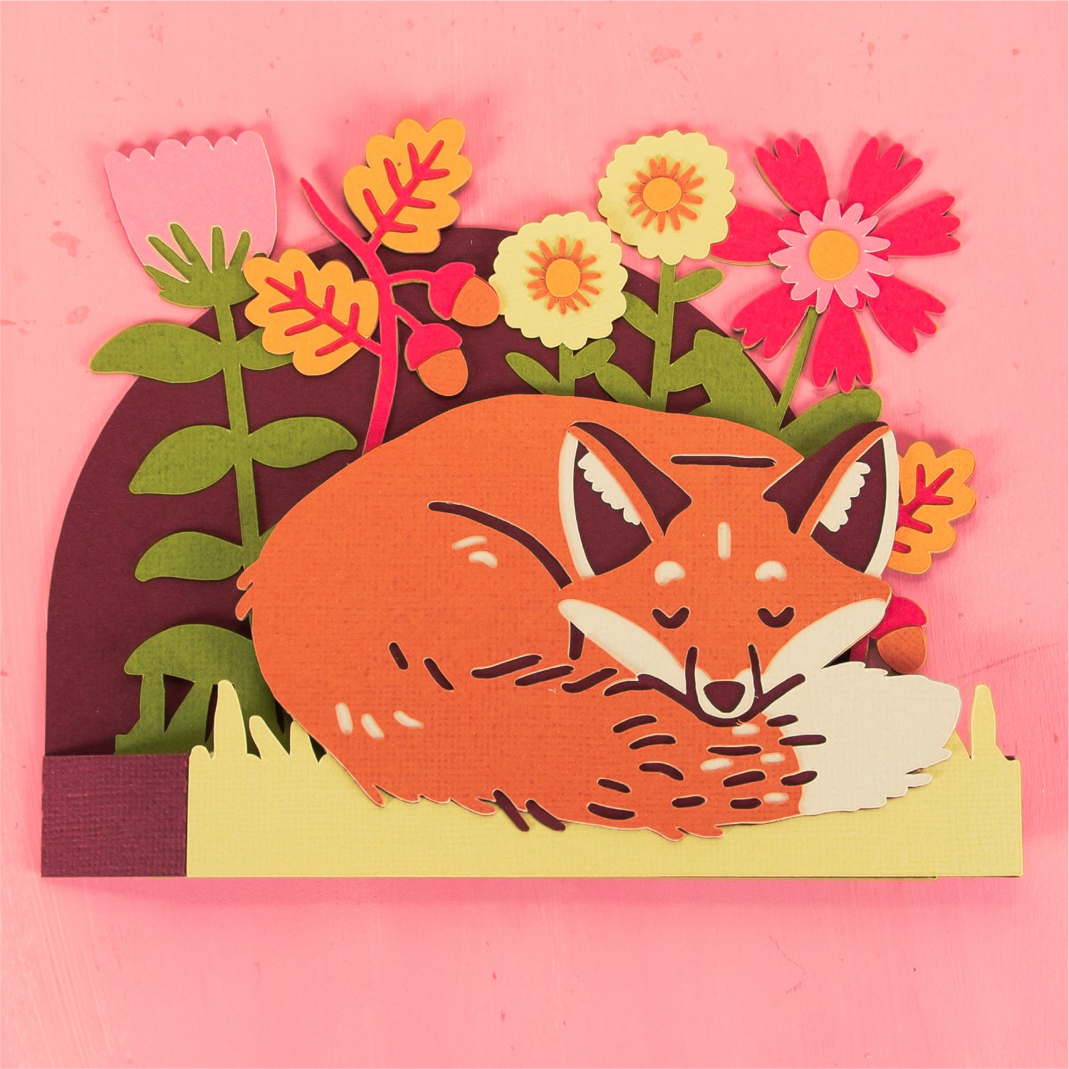Create the cutest fall card with this Sleeping Fox Card - a 3D Autumn Card SVG! Featuring an adorable fox and some colorful flowers, this cutting file is perfect for Cricut and Silhouette cutting machines. The card folds flat for easy mailing and fits perfectly in the included 5x7” envelope cut file. This design would work great for a birthday, a thank you card, or just because! Change the color of the flowers for a more customized look, and add your own words to the front! Explore more of my designs for even more cute and creative papercraft ideas!