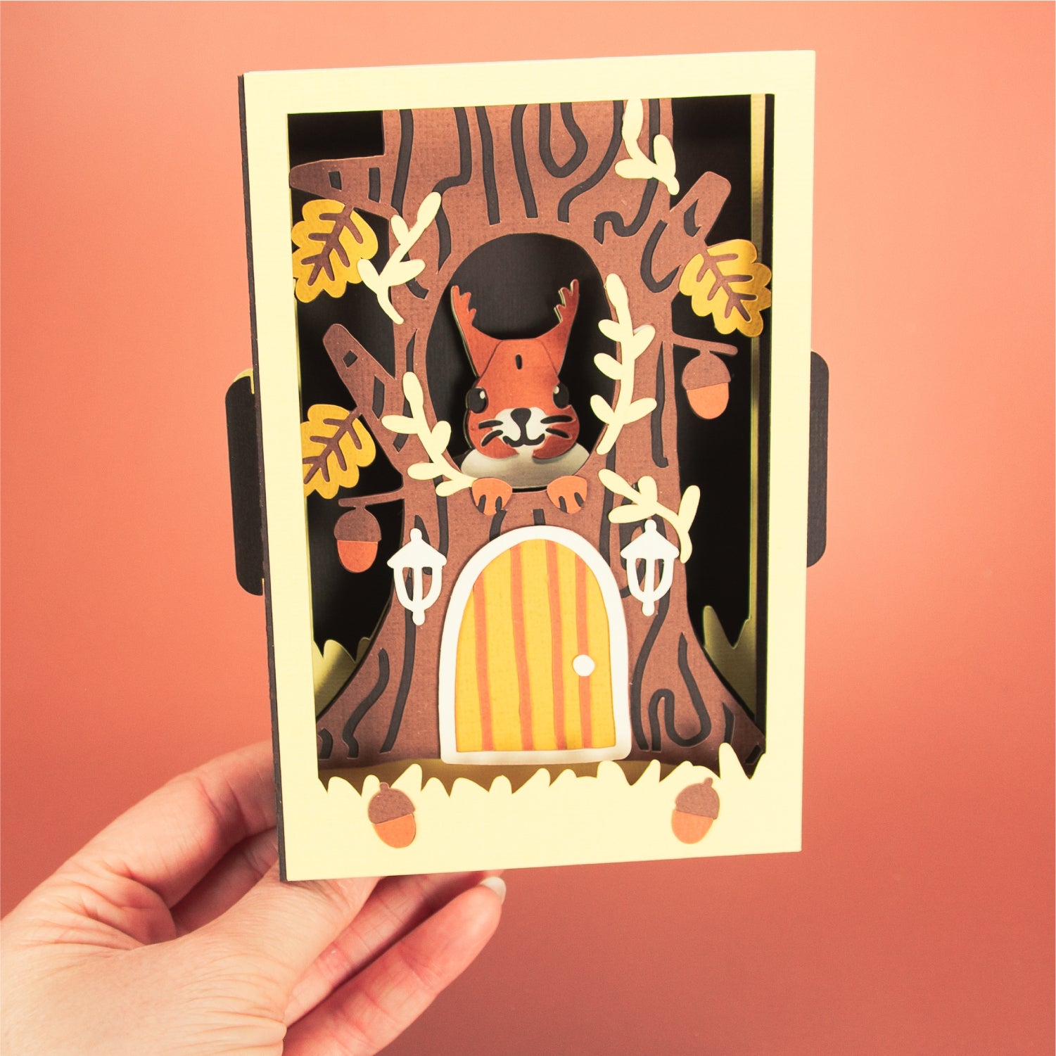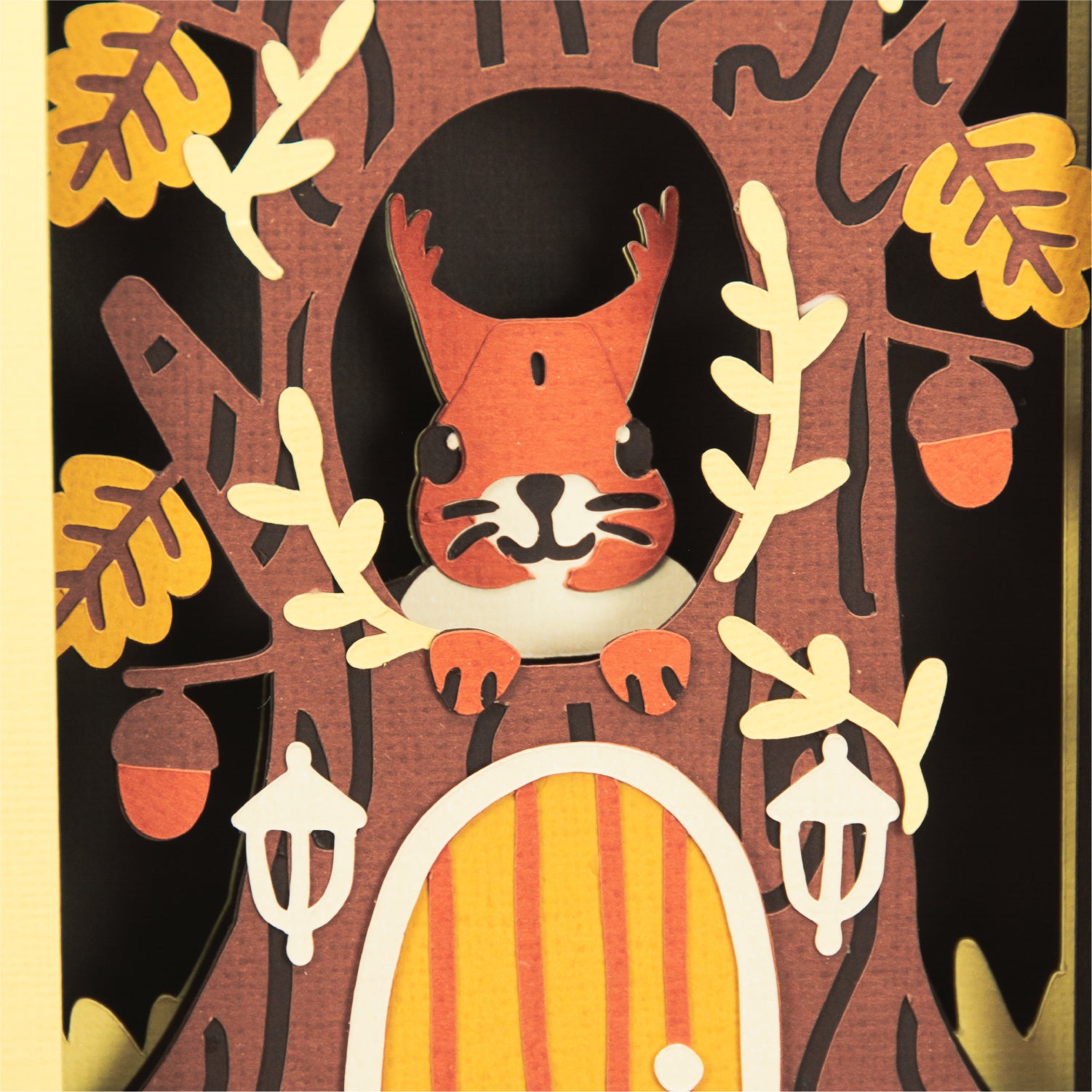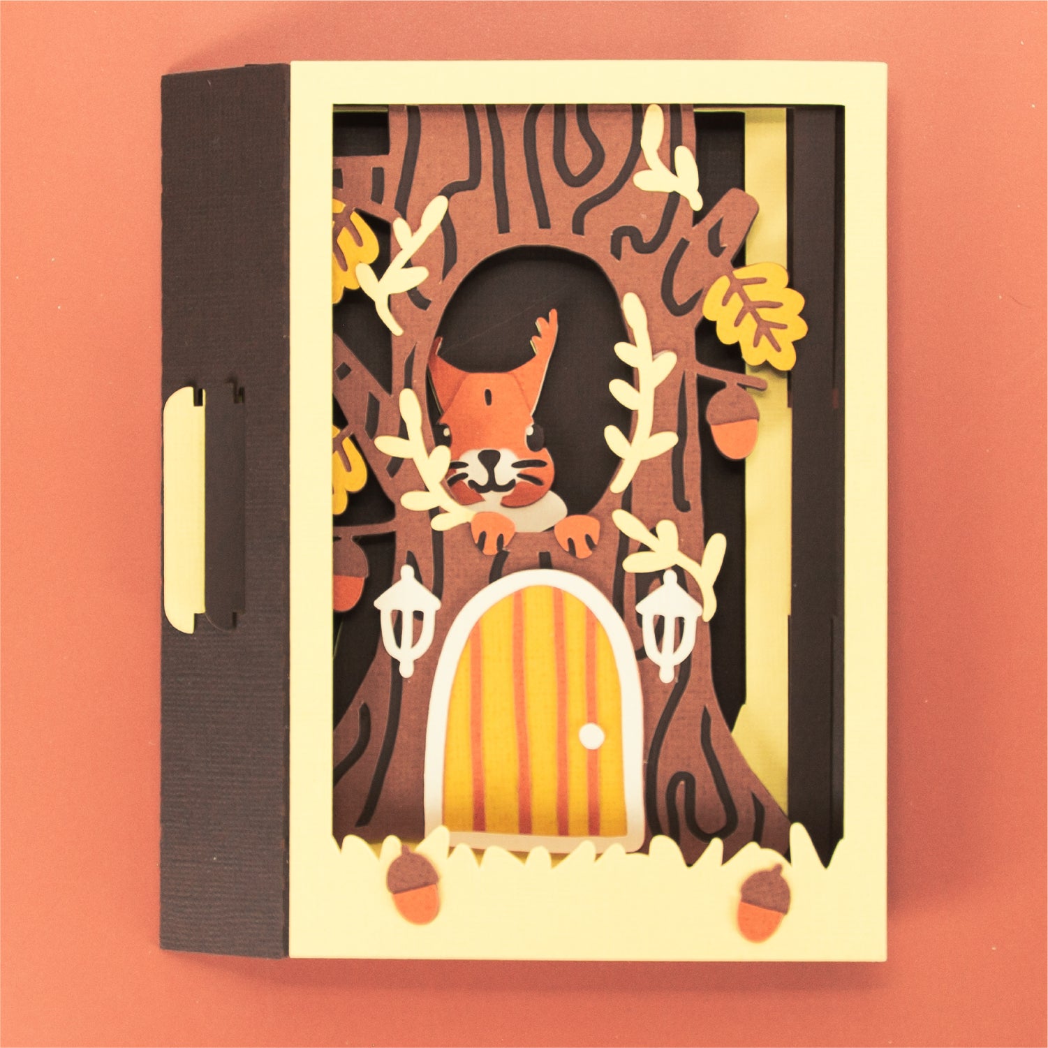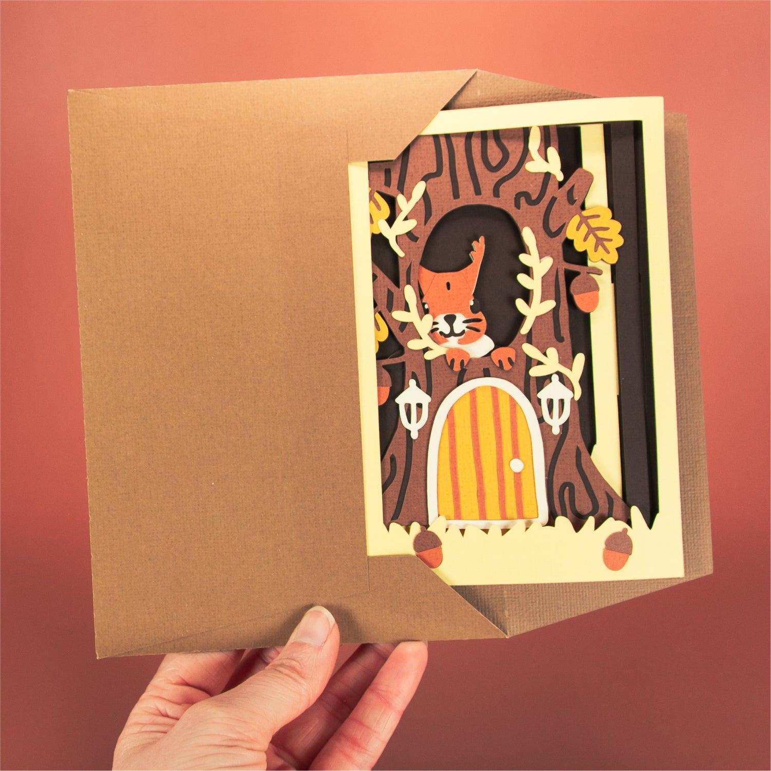 Create the cutest fall card with this Squirrel in a Tree House Card - a 3D Autumn Card SVG! Featuring an adorable squirrel in a tree, this cutting file is perfect for Cricut and Silhouette cutting machines. The card folds flat for easy mailing and fits perfectly in the included 5x7” envelope cut file. This design would work great for a birthday, a thank you card, or just because! Change the color of the door & lights for a more customized look, and add your own words to the front! Explore more of my designs for even more cute and creative papercraft ideas!