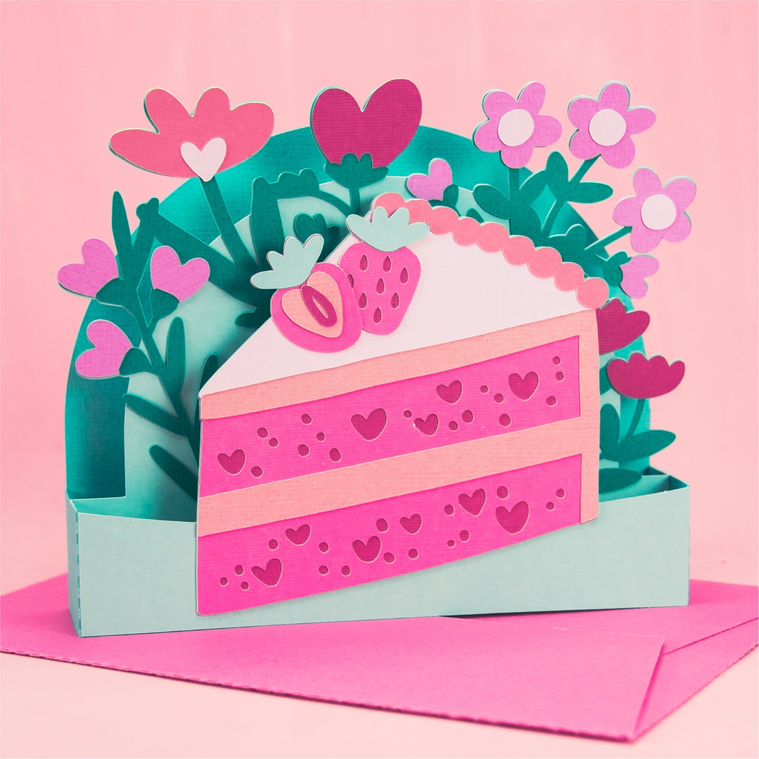 Strawberry Cake Slice Card - 3D Birthday Card SVG