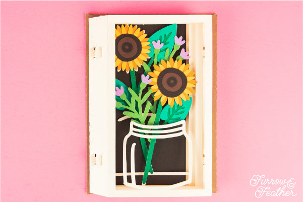 A beautiful card for summer or for a birthday! This pop up card svg works for any occasion. Simply add your own sentiment! Folds flat to fit in the included 5x7” envelope cut file.