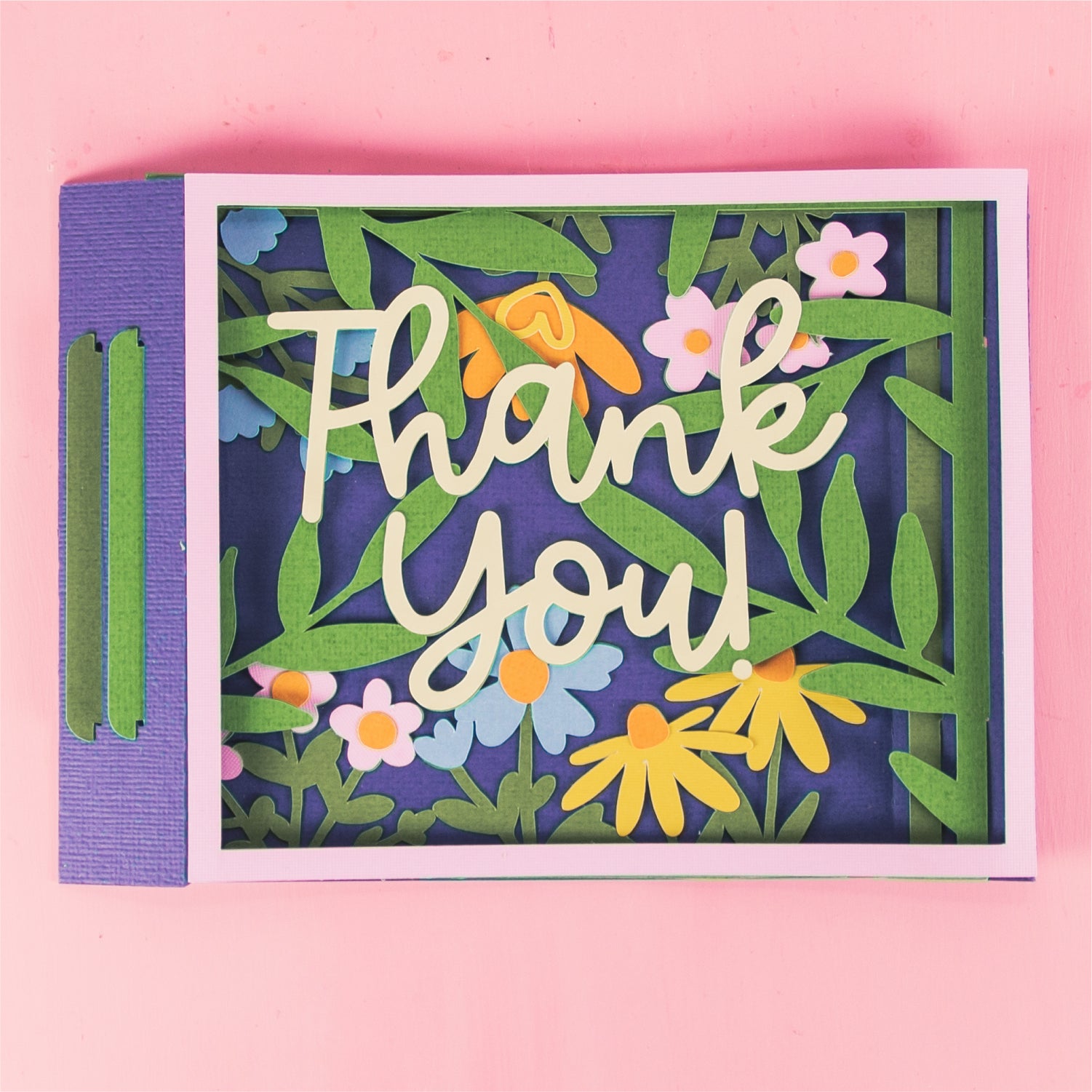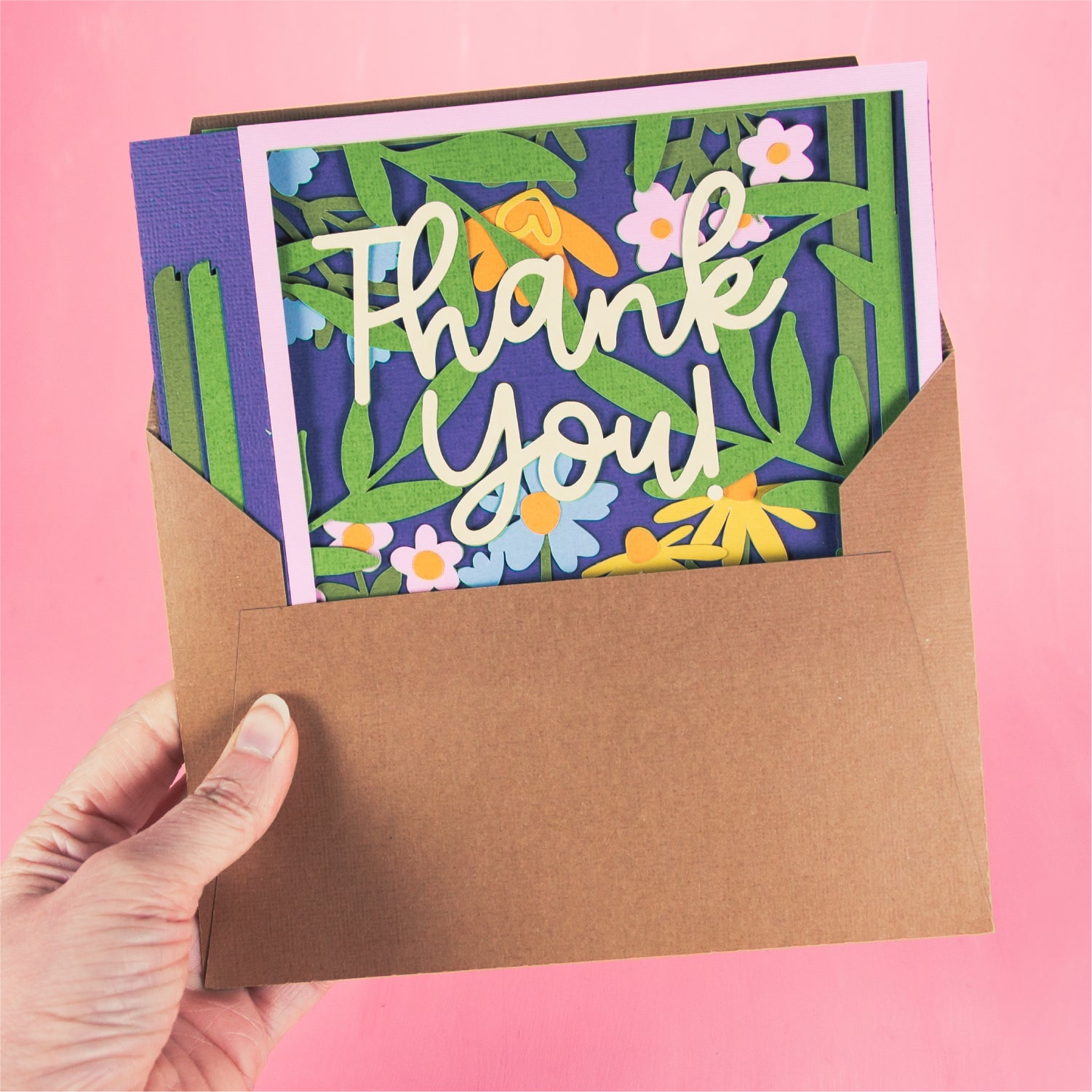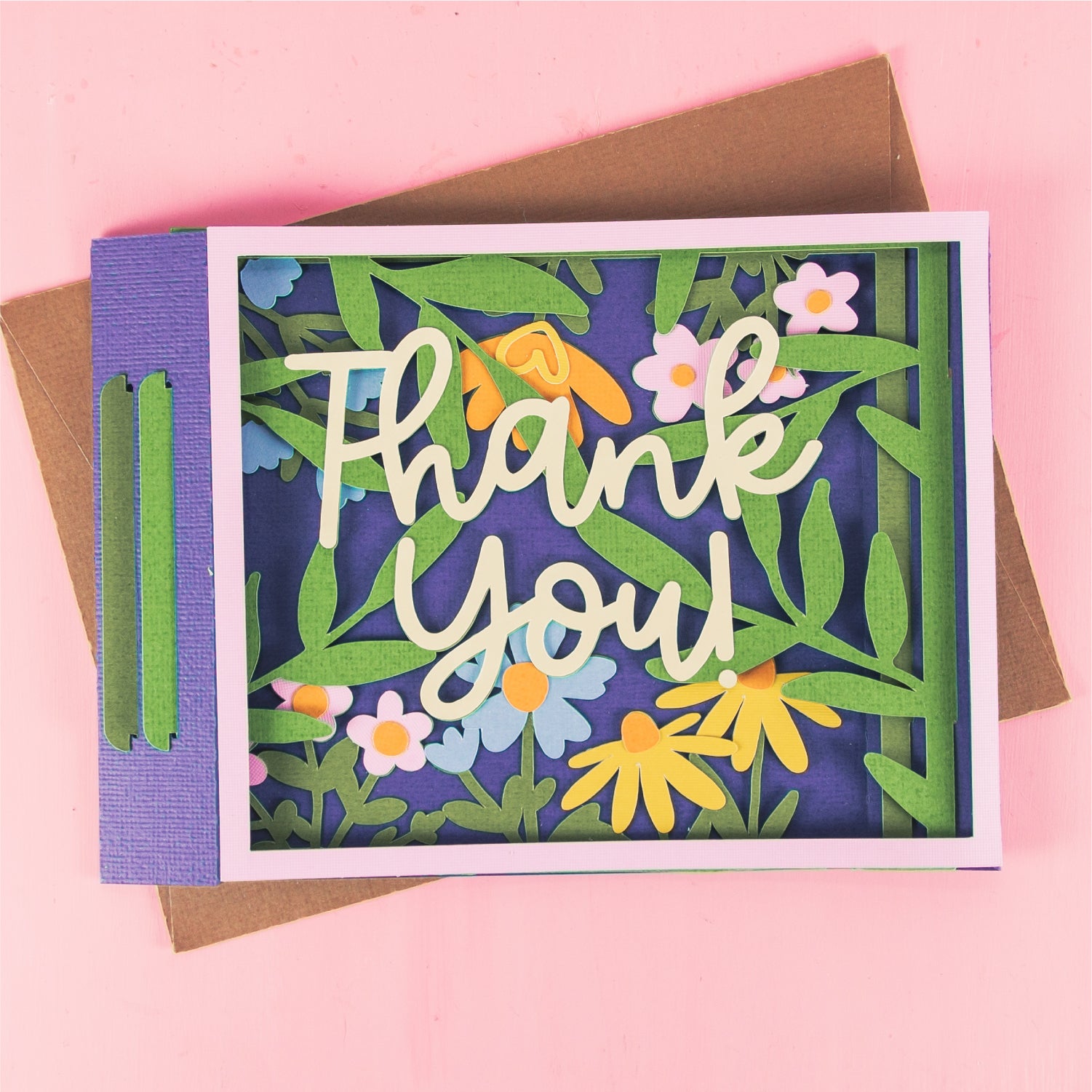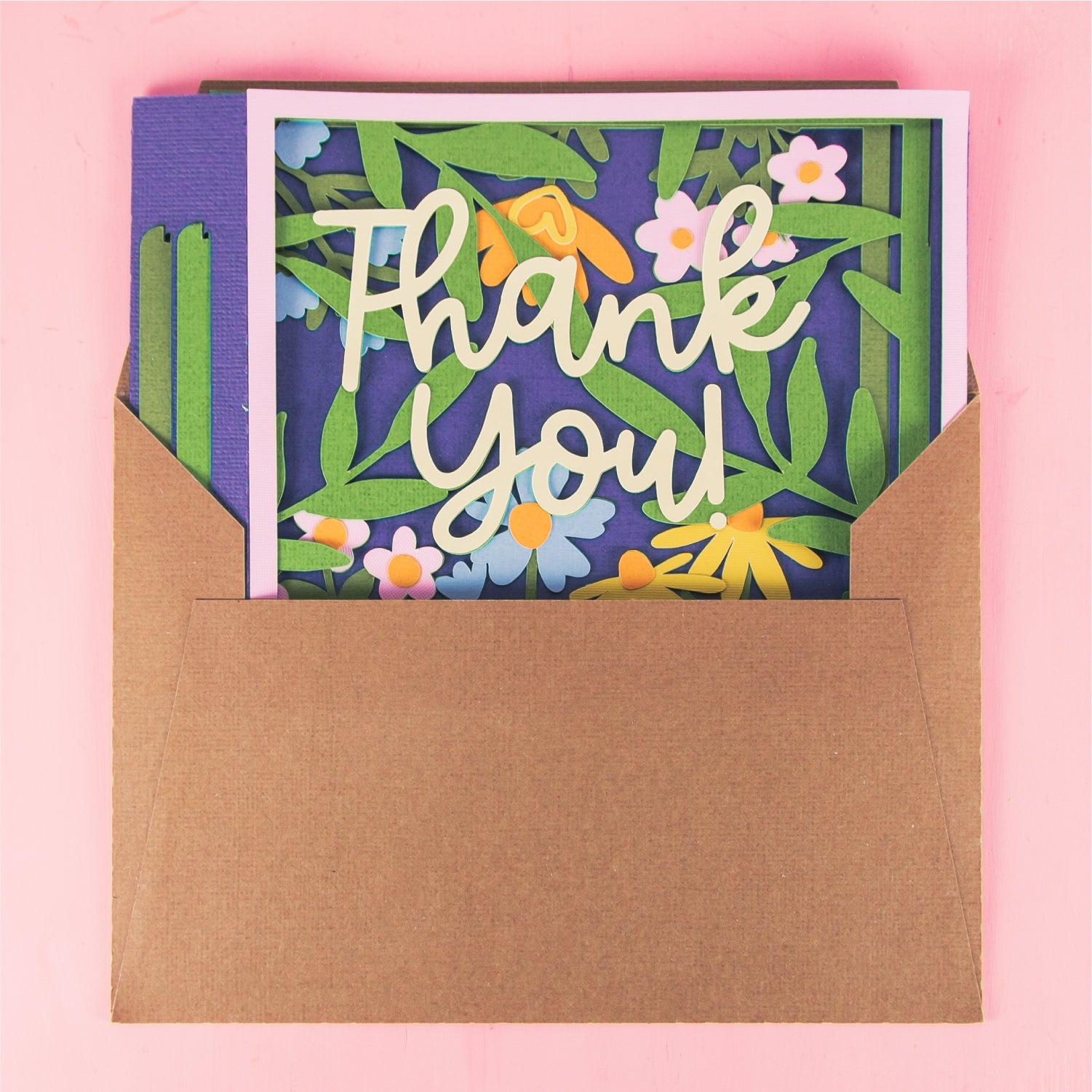 Create a stunning Thank You card with this Thank You Card Layered with Flowers - a 3D card SVG! This is a gorgeous card for a friend, a co-worker, a neighbor, and more! I love updating the cardstock colors to match the recipients favorite flowers! This cutting file is perfect for Cricut and Silhouette cutting machines. The card folds flat for easy mailing and fits perfectly in the included 5x7” envelope cut file. Explore more of my card designs for even more cute and creative ideas!
