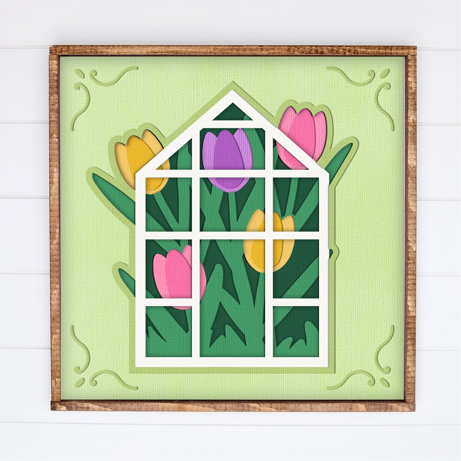 Tulip Greenhouse Shadow Box - 3D Spring and Easter Shadowbox SVG