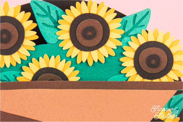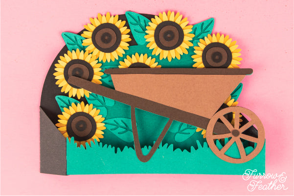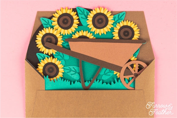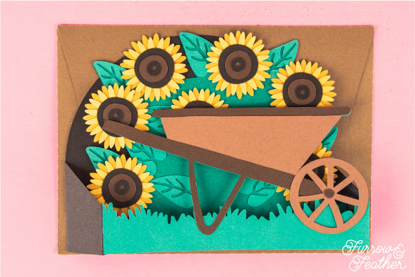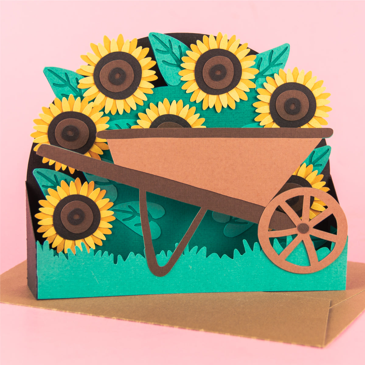 A beautiful card for autumn or summer! Features a riot of sunflowers. This card works for any occasion, simply add your own sentiment! Folds flat to fit in the included 5x7” envelope cut file.