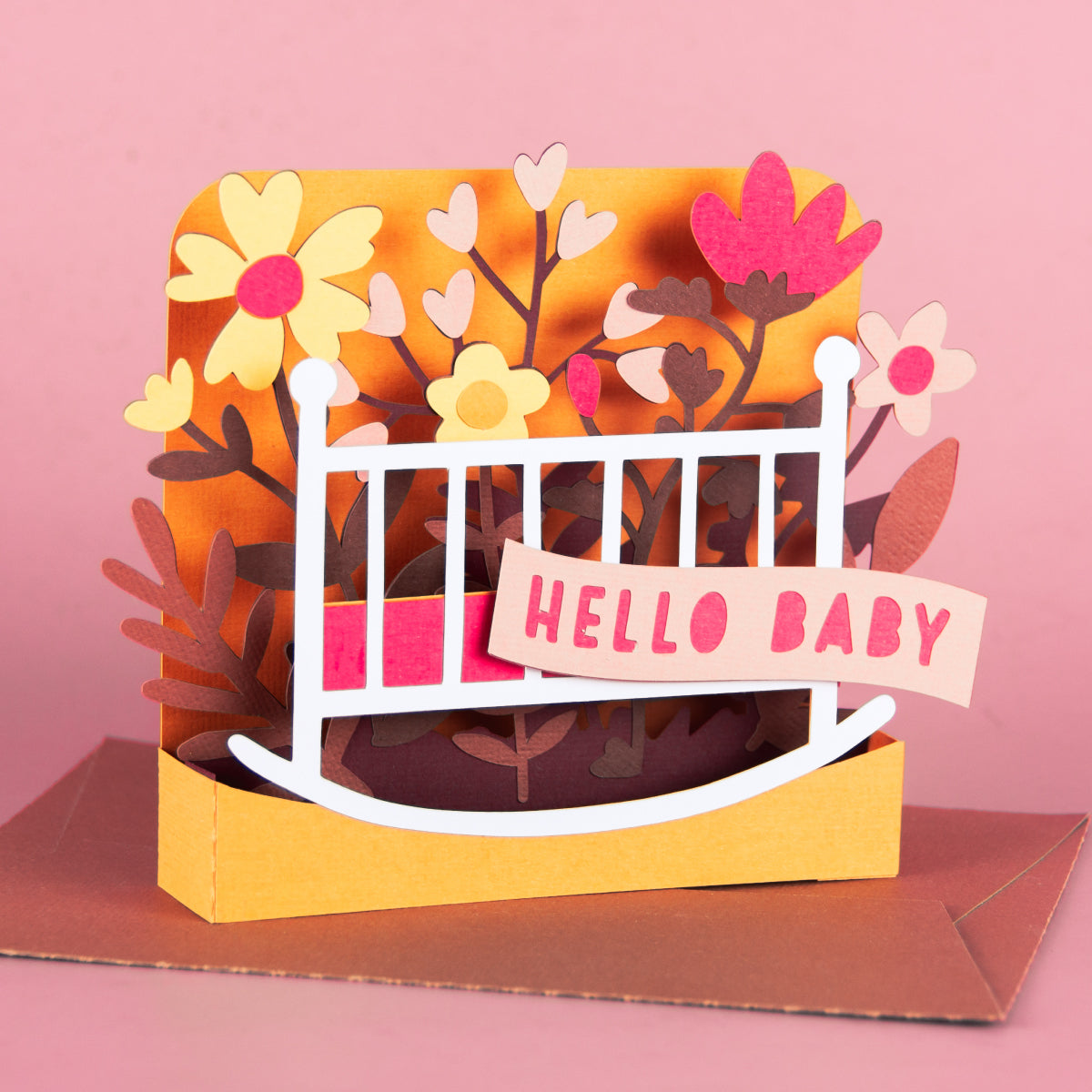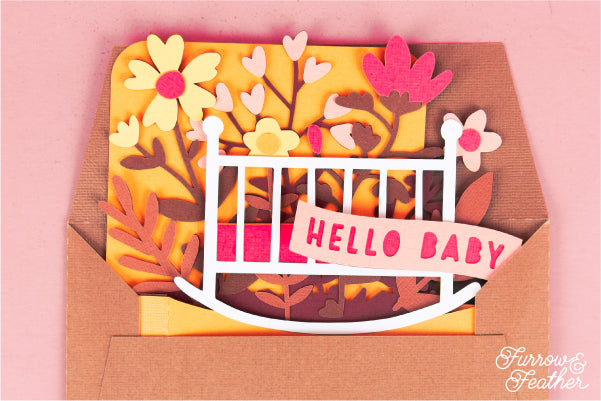 Such a beautiful card to celebrate a new baby! See the thumbnails for other colorway ideas. This card is super customizable with 10 different sentiment options. Change the colors of the flowers to make it super unique! Folds flat to fit in the included 5x7” envelope cut file.