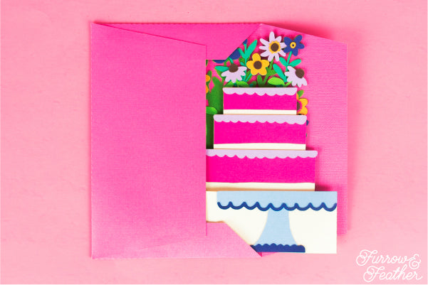 The cutest card for a birthday! Add your own sentiment to really customize the card. Folds flat to fit in the included 5x7” envelope cut file.