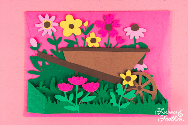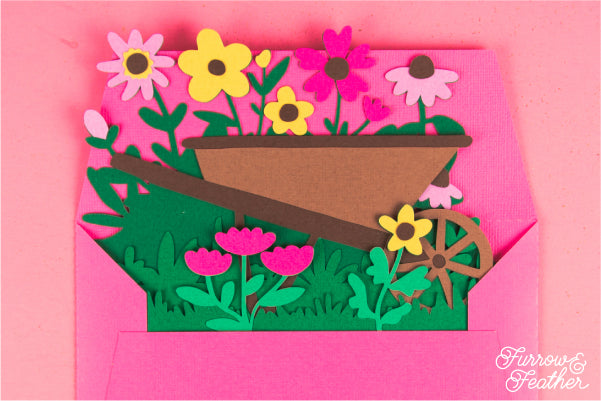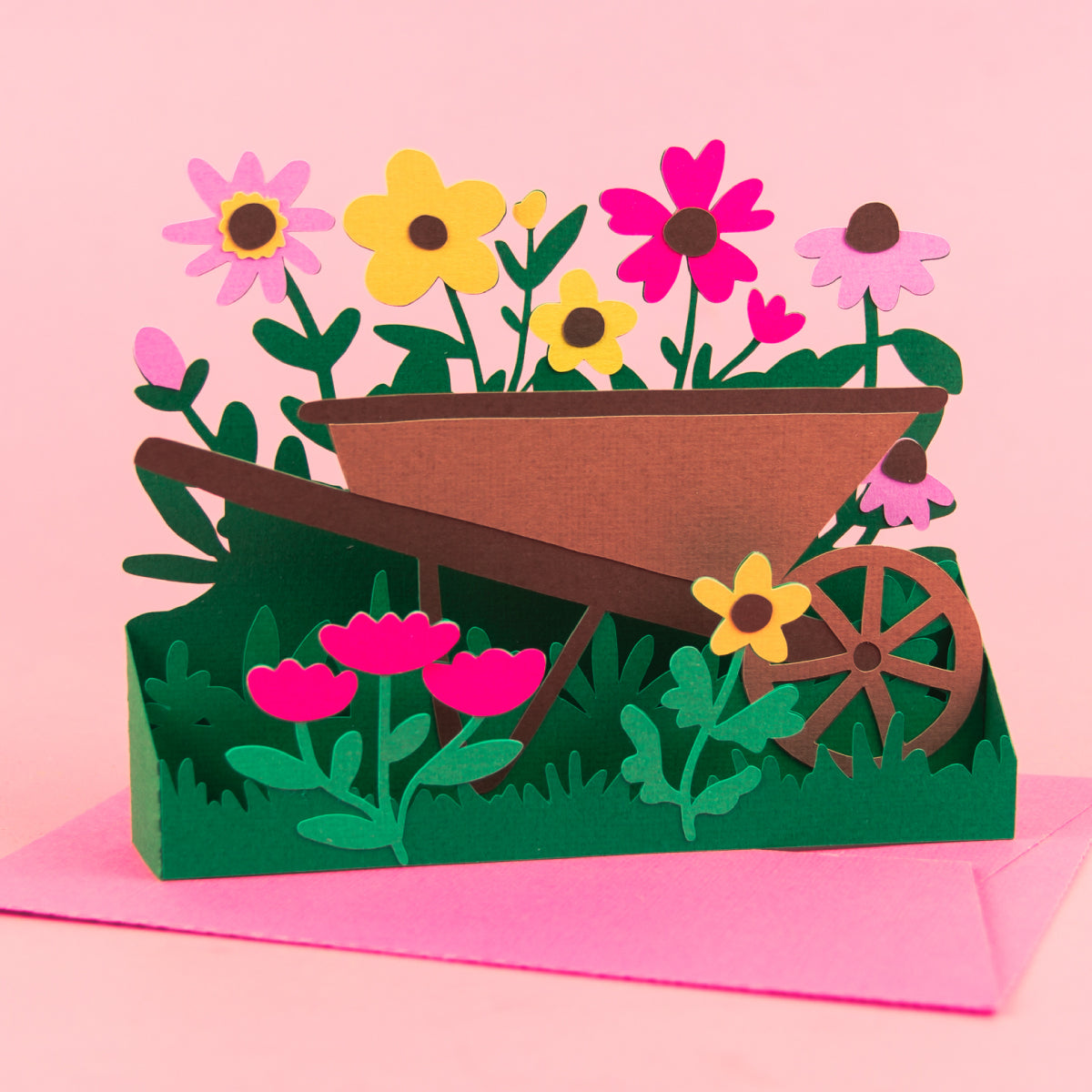 Such a great any occasion card! Add your own sentiment to customize the card. Love this card for spring, or any time of the year for your favorite gardener! Folds flat to fit in the included 5x7” envelope cut file.