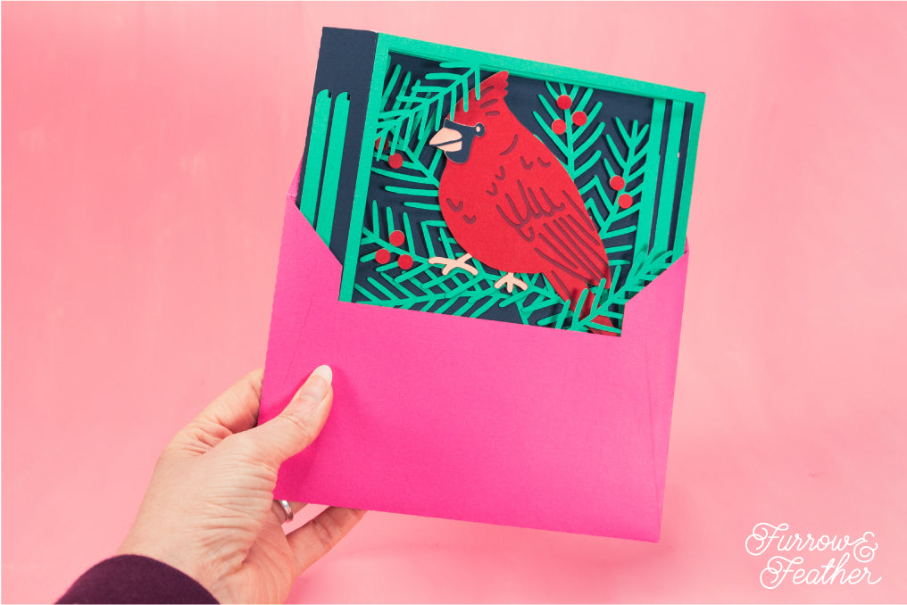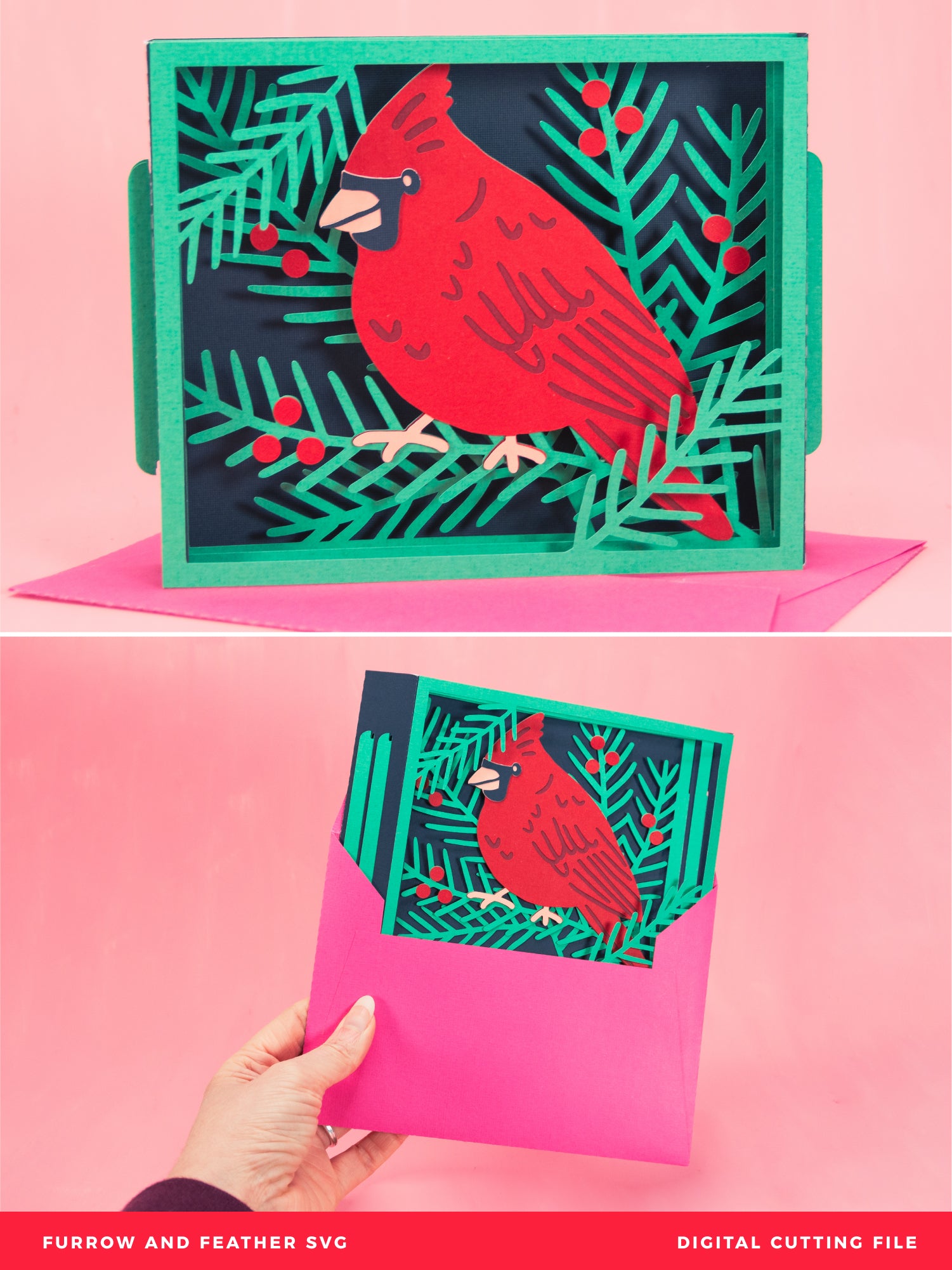 Make your holiday crafting truly special with this Winter Cardinal Holiday Card SVG! Featuring a stunning cardinal design perched in pine branches, this card is perfect for Cricut and Silhouette cutting machines. The card folds flat for easy mailing and fits nicely in the included 5x7” envelope cut file. Discover more of my festive designs for even more magical Christmas card SVG files!