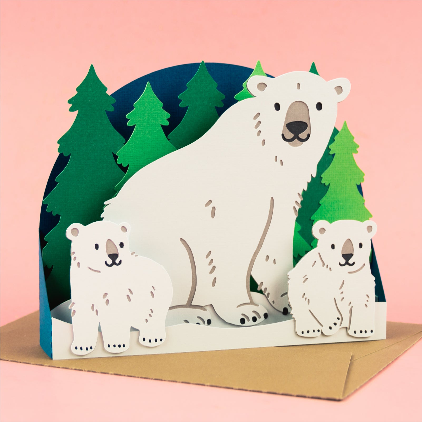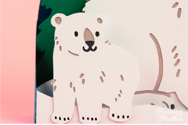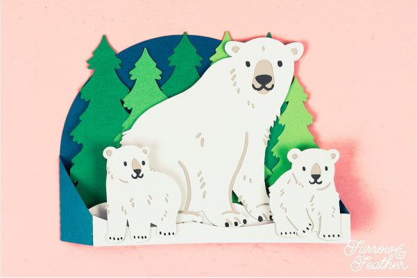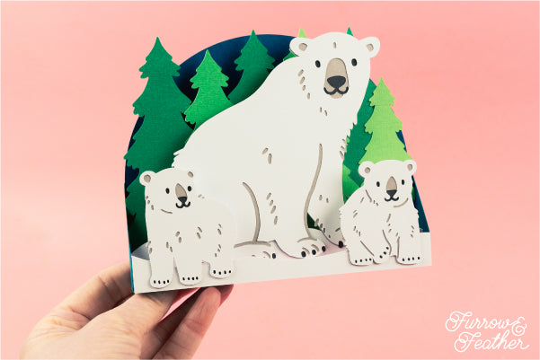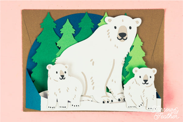 Such a cute card for any winter holiday! Use the optional scarves, and cut them out of a patterned paper for a unique look! Also would work great for Mother’s Day or Father’s Day. Folds flat to fit in the included 5x7” envelope cut file.