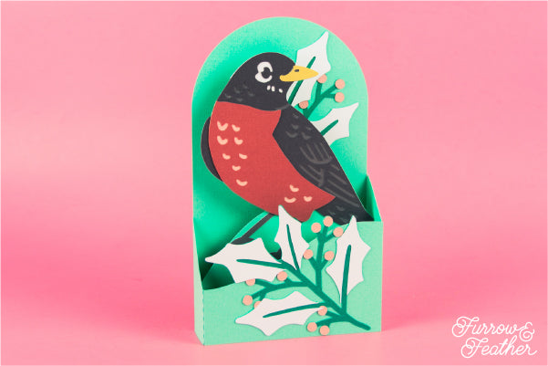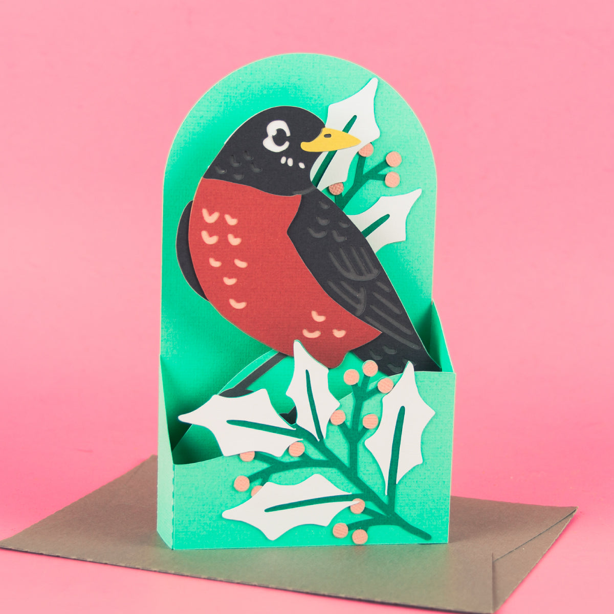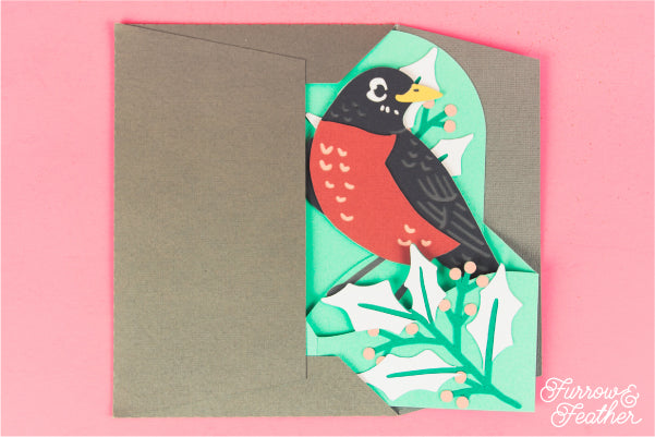 A really beautiful Christmas card for the winter season! This card comes together really quickly. Folds flat to fit in the included 5x7” envelope cut file.